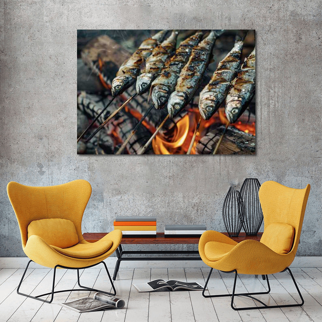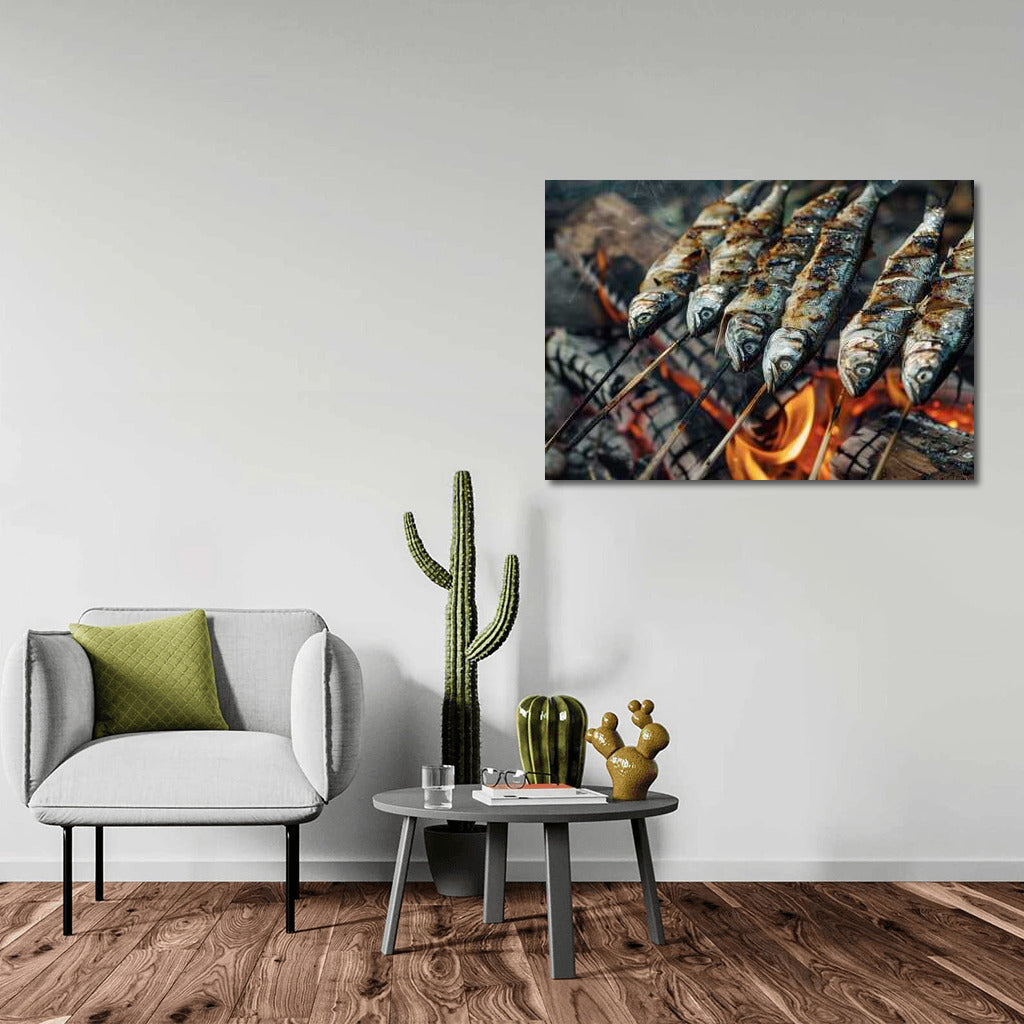 Grilled river fish wall art is a mouth-watering symphony of flavors captured on a poster for gourmets and aesthetes. See more from the collection: Food Art