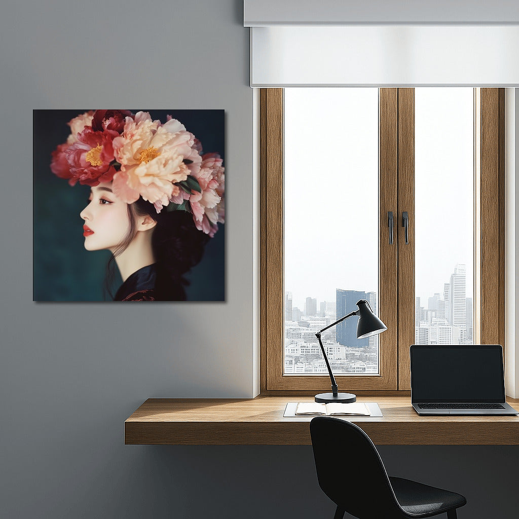 Elegant painting: girl in flowers, the embodiment of grace and nature. Ideal wall art for a sophisticated interior. See more from the collection: Wall Art with Women