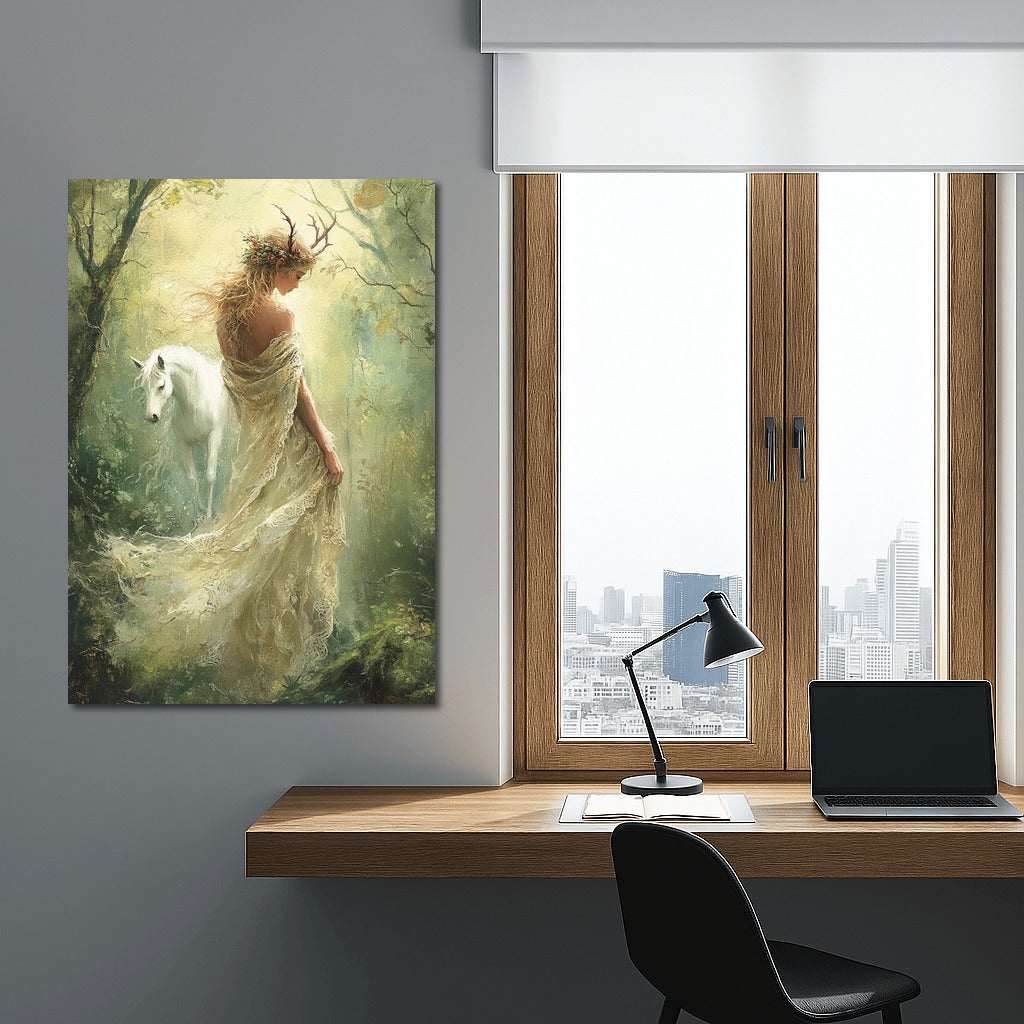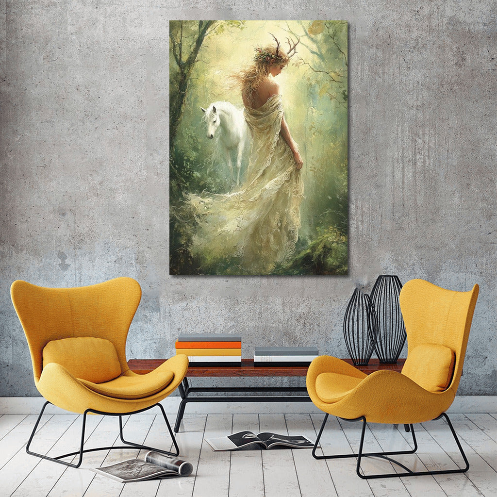 Grace of Forest Dreams: Unicorn and Elven Magic Wall Art