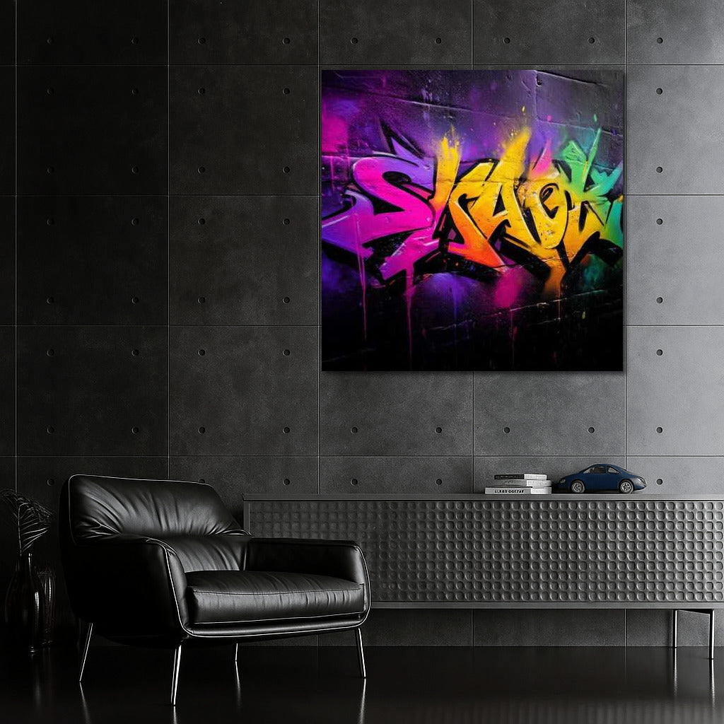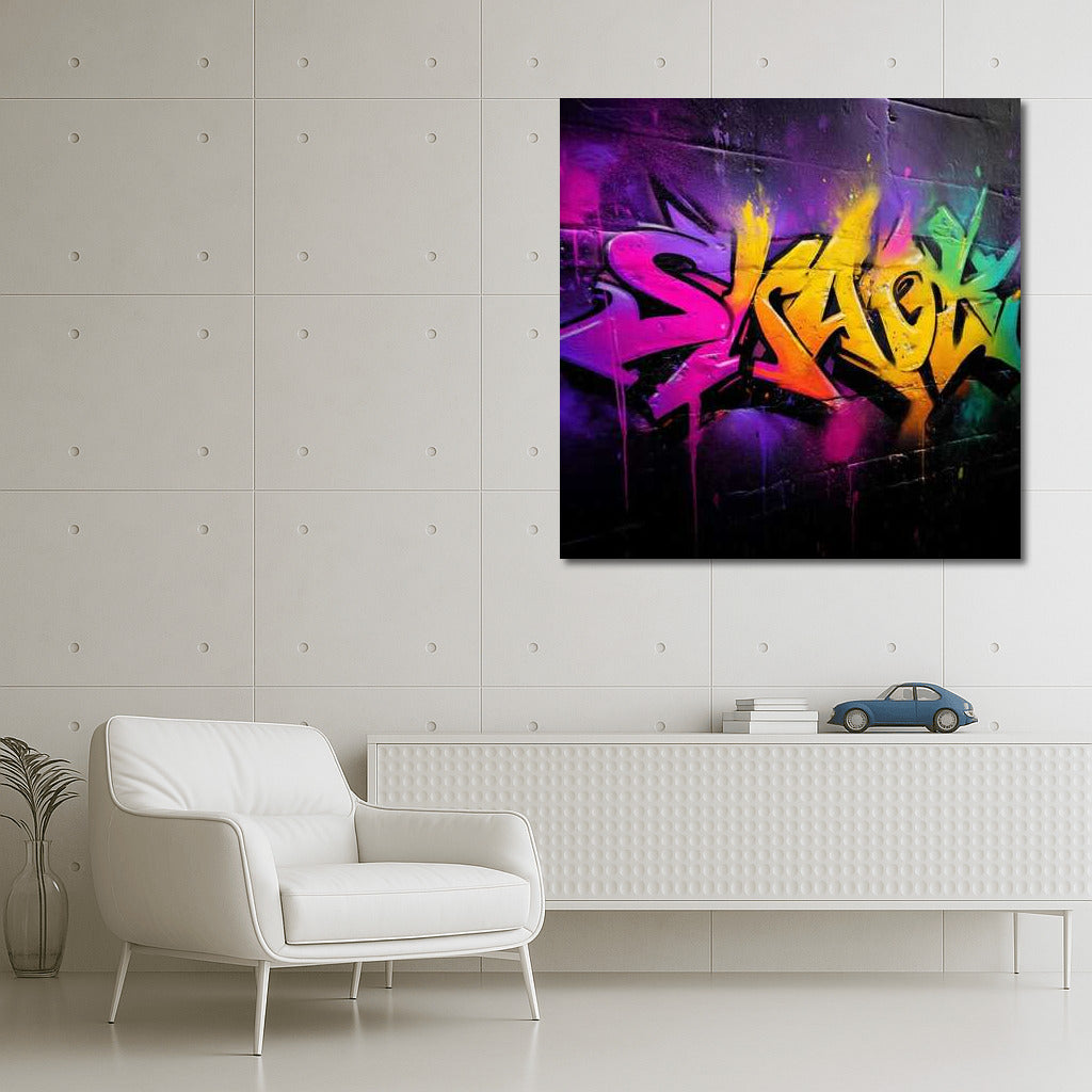 A vibrant burst of color and dynamic lines, this poster will be a spectacular accent in your space, bringing the walls to life with the energy of the streets. See more from the collection: Graffiti Art