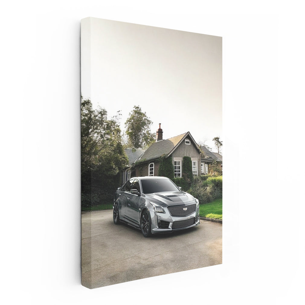Gray Cadillac in Village - Elegant and Timeless Wall Art