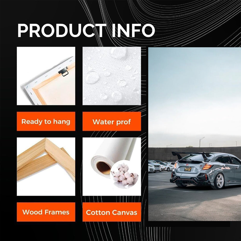 Yo, bros! This is a poster - Honda Civic in gray in a parking lot. A painting from the world of cars for real car fans. Wall art that will pump up any wall. Style and audacity in one frame. See more from the collection: Honda Art