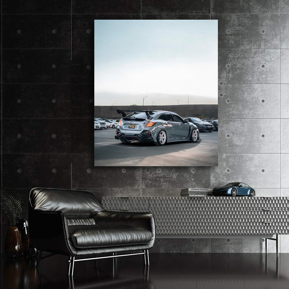 Gray Honda Civic in Parking Spot - Sleek and Stylish Wall Art