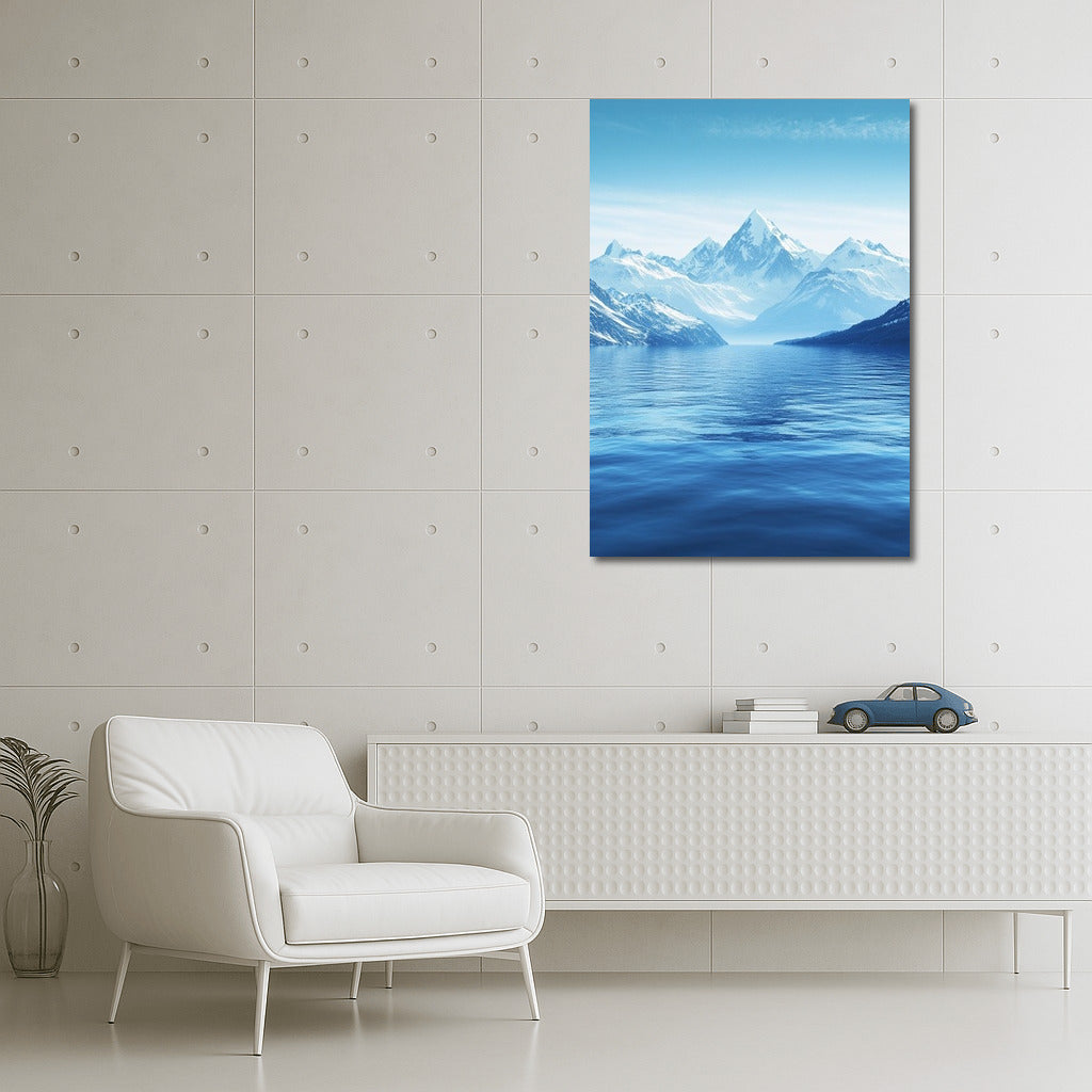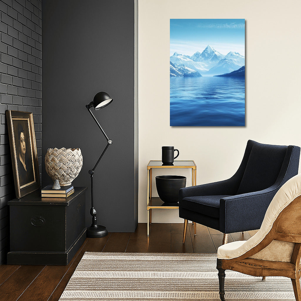 Harmony of nature in the poster: majestic mountains and calm waters bring freshness and inspiration to wall art. See more from the collection: Lakes & Rivers Art