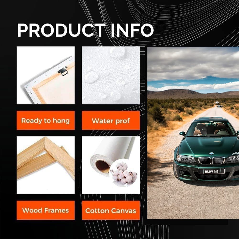 Imagine a poster of a green BMW M3 Competition Sedan roaring across the wall. A painting as a challenge to speed and power, wall art for true car fans. It’s not just an image, it’s an adrenaline rush that makes your heart beat faster. See more from the collection: BMW 3 Series Art