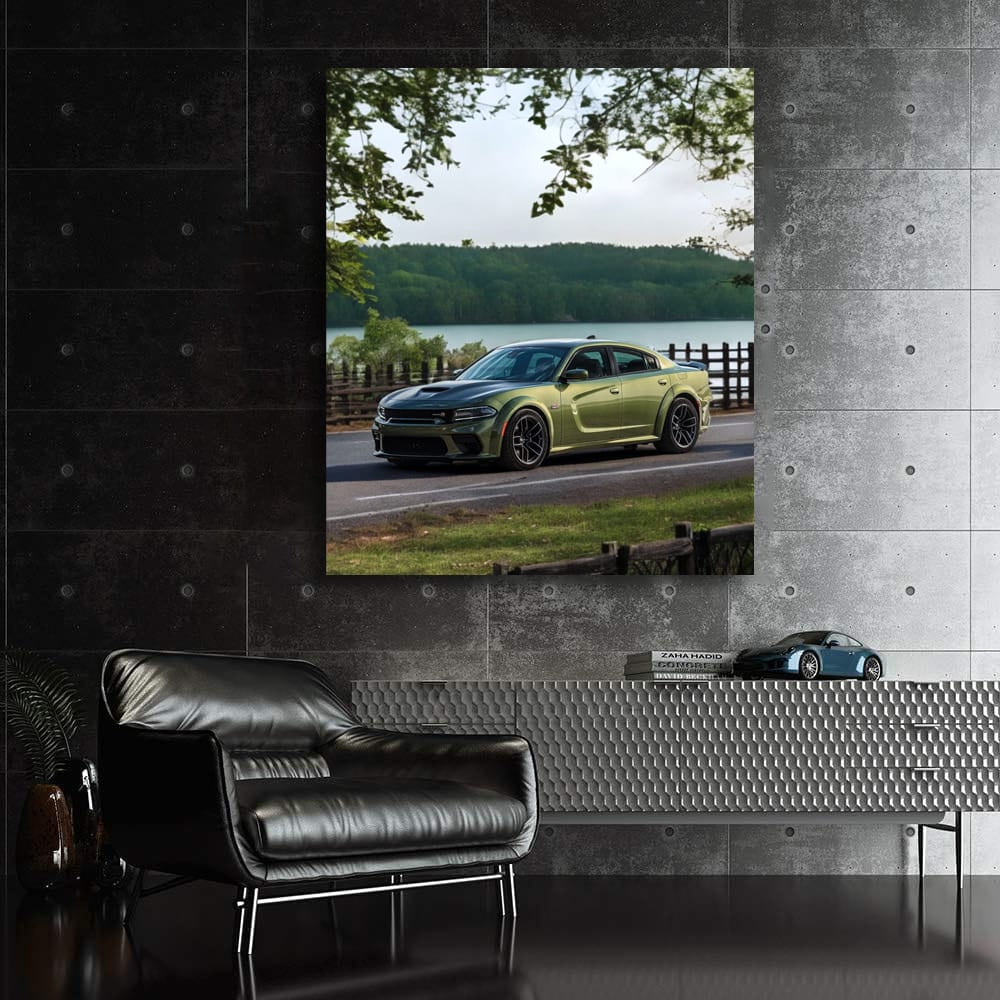 Check out this wall art, bro! The Dodge poster on the green background is just the bomb. The painting that gives you goosebumps, like a powerful V8 roar. Wall art that brings out the car fan in you. Check it out and enjoy! See more from the collection: Dodge Art