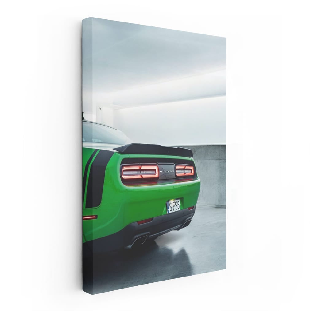 Green Dodge in Parking Lot - Classic Style Ride Wall Art