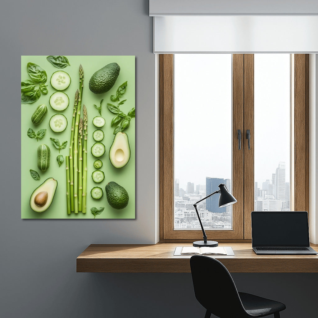 The freshness and harmony of greenery in this painting will enliven your interior! Wall art that inspires a healthy lifestyle. See more from the collection: Food Art