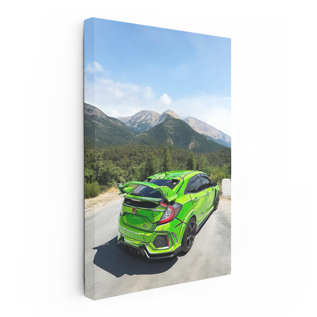 Green Honda Civic in Mountain Scenery - Stylish and Reliable Wall Art