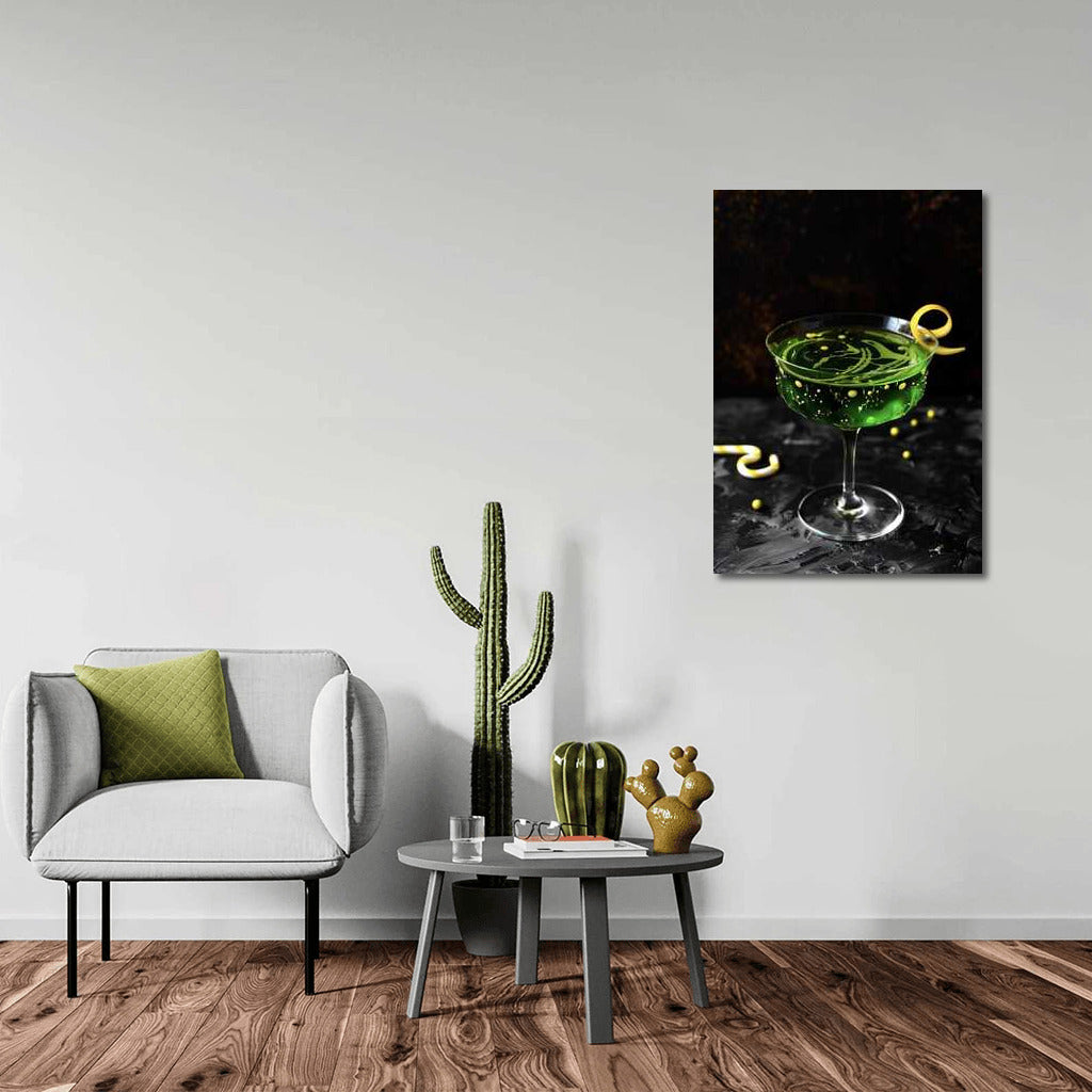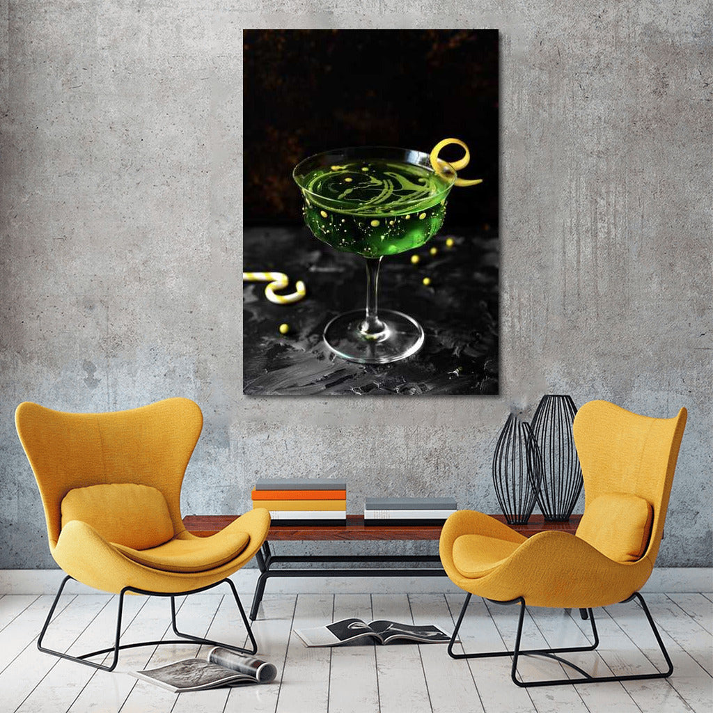 A rich green cocktail in a glass, the embodiment of freshness and style. This poster will be the highlight of your wall art. See more from the collection: Food Art