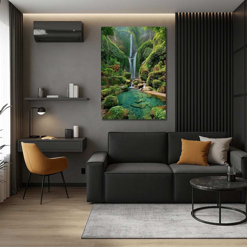 Green Symphony Waterfall: Nature Landscape Wall Art