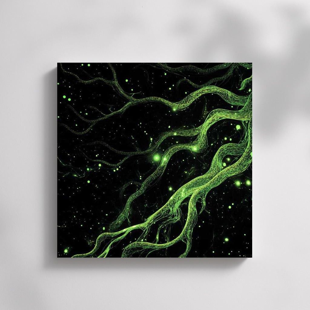 Green Vortex: Abstract Particle Dynamics Wall Art