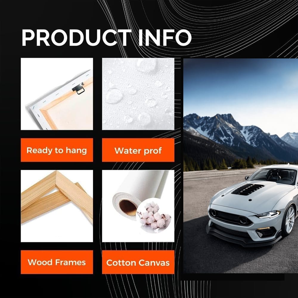 This poster is just a bomb! It shows a Mustang, sharpened for the mountains, the wheels menacingly looking down. Wall art for those who appreciate speed and power. A painting that makes the adrenaline rush, as if you yourself are behind the wheel of this iron beast. See more from the collection: Ford Art