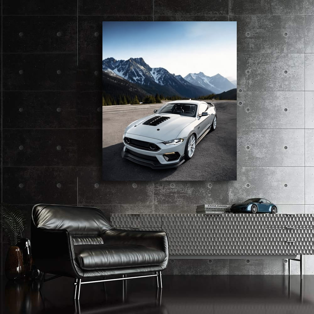 Grey Mustang Conquers Mountain Roads - Power Unleashed Wall Art