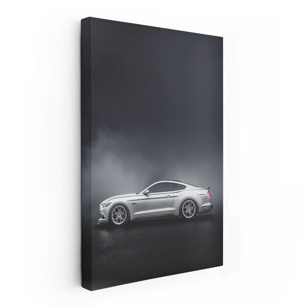 Grey Mustang Enveloped in Fog - Power Meets Elegance Wall Art