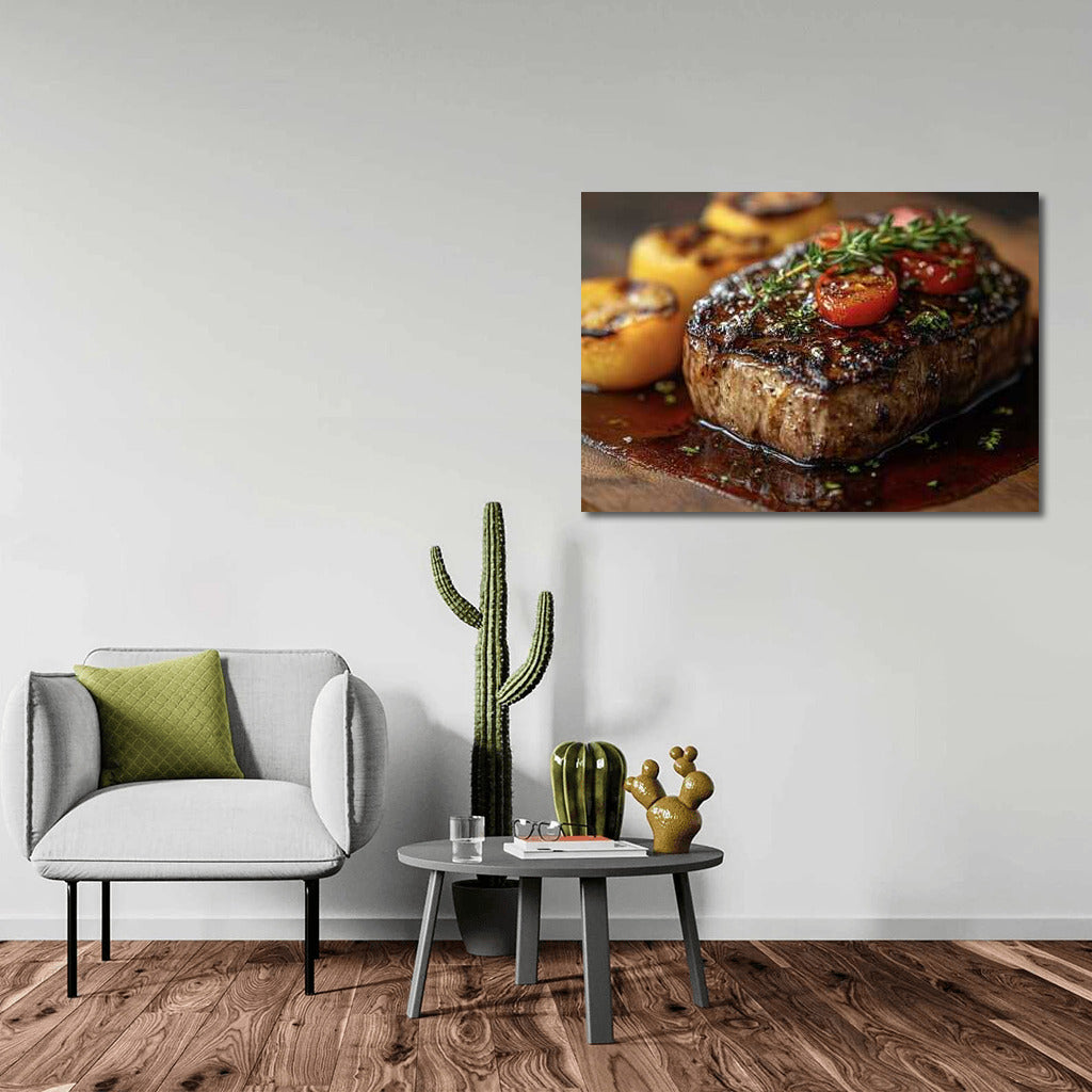 Grill Master: Juicy Steak on Fire Wall Art