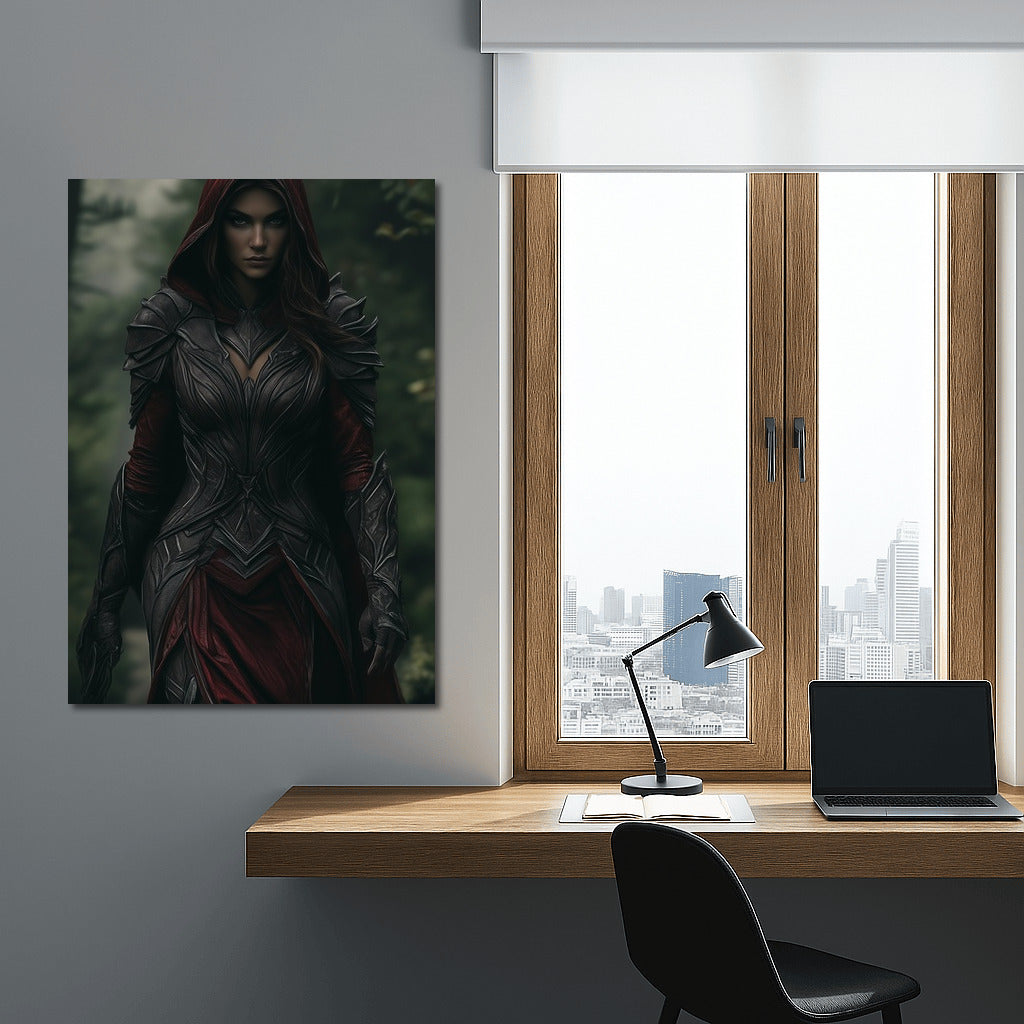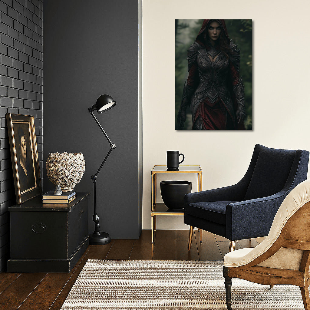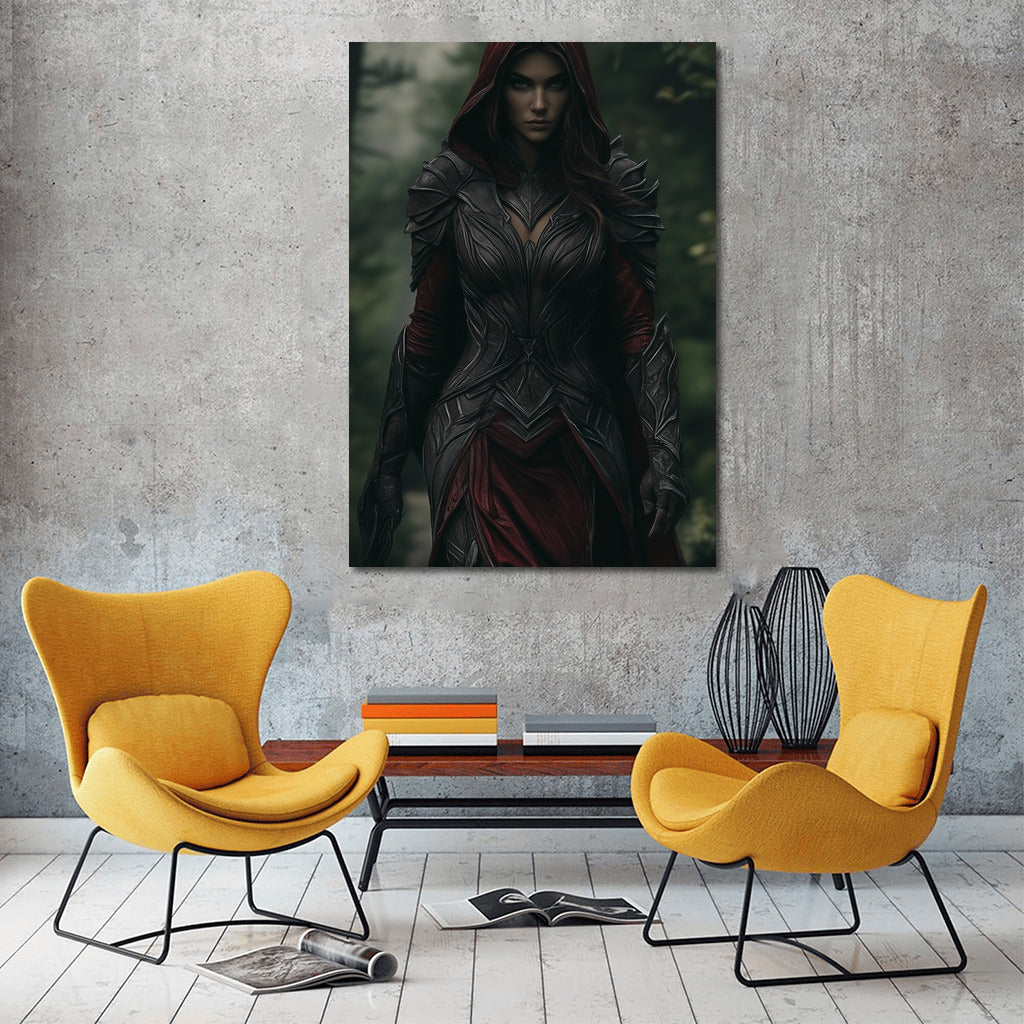 Immerse yourself in the magic of the forest with this poster: a mysterious figure in armor, harmony of nature and fantasy wall art. See more from the collection: Mixed Wall Art