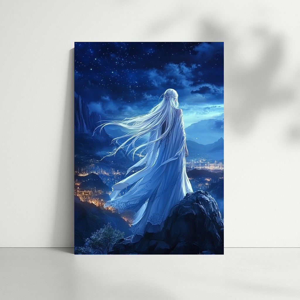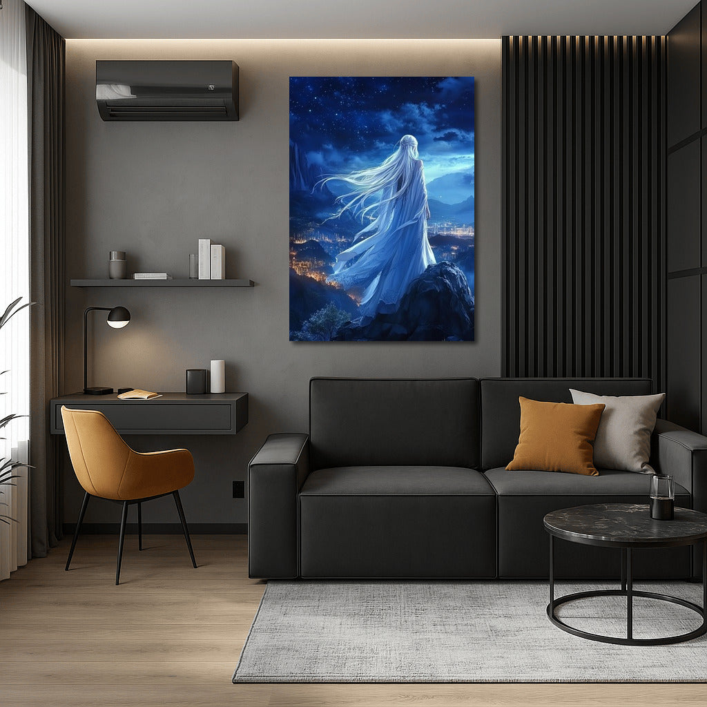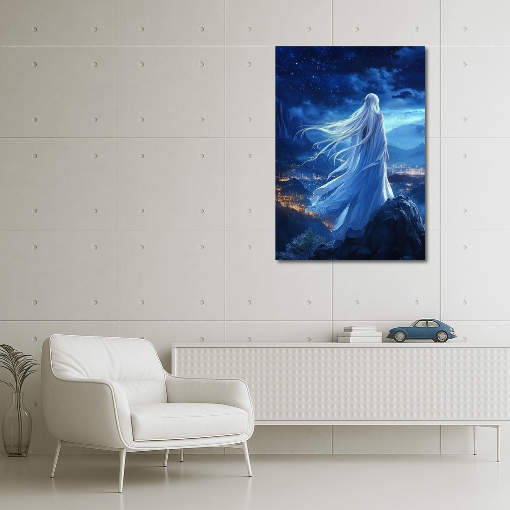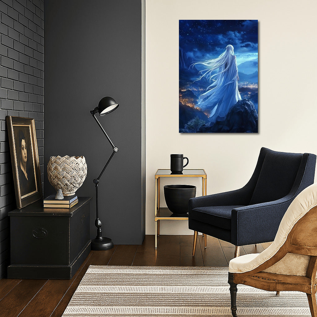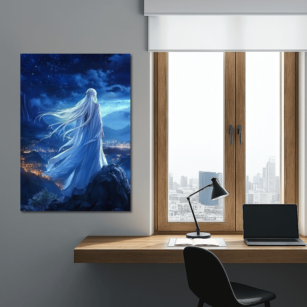 A mesmerizing poster immortalizes a mystical figure over a city at night, filling the space with magic and mystery. Dream wall art! See more from the collection: Fantasy Art