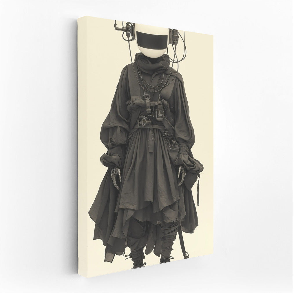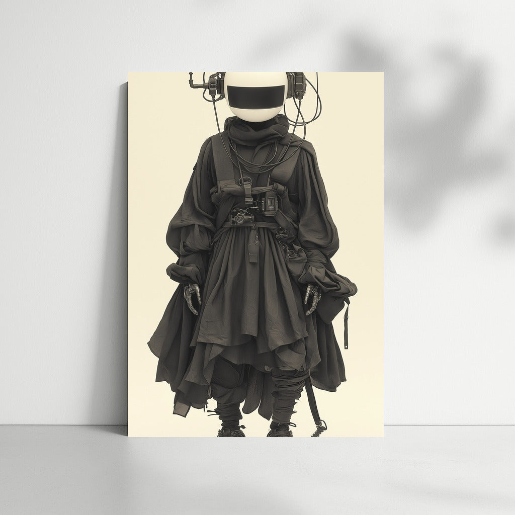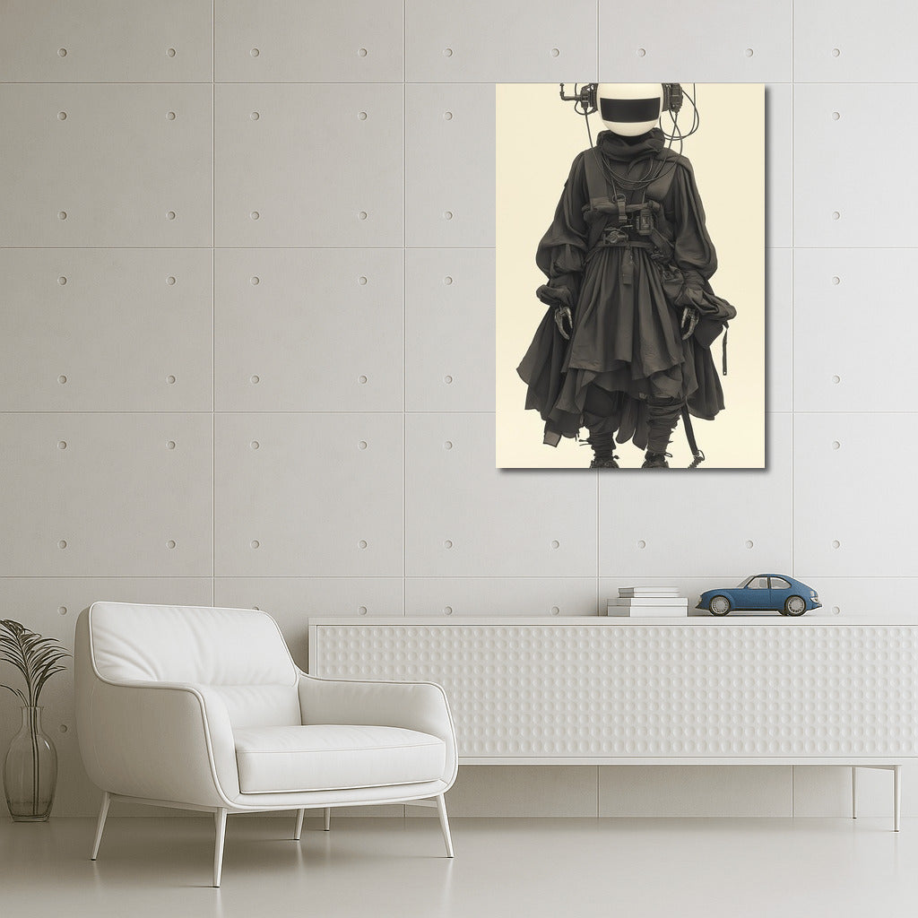 Futuristic poster: mysterious figure in high-tech outfit. Wall art for lovers of fantasy and style. See more from the collection: Mixed Wall Art