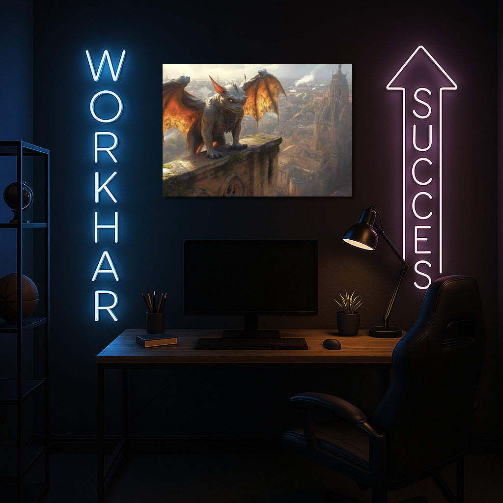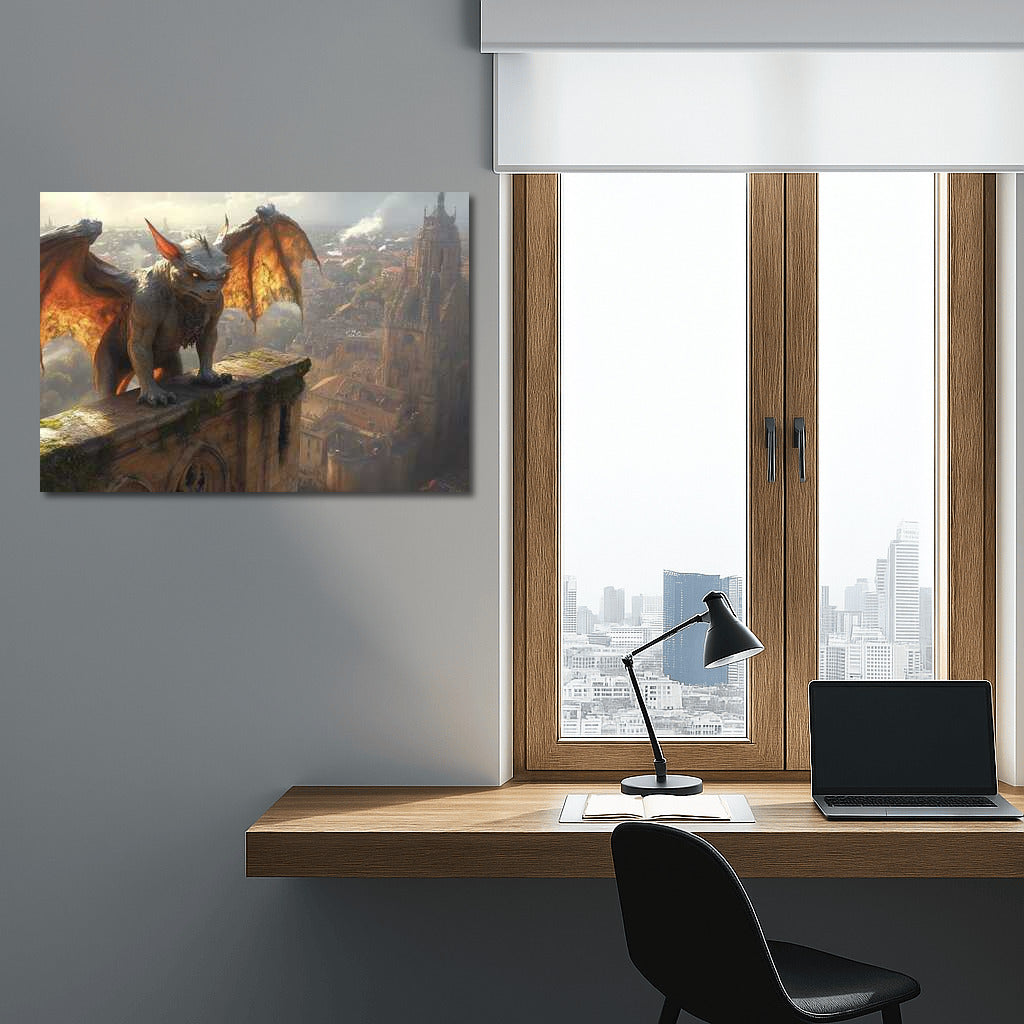 Fantasy Gargoyles Poster: Mystical wall art featuring a majestic gargoyle guarding an ancient city. Magic in every stroke. See more from the collection: Fantasy Art