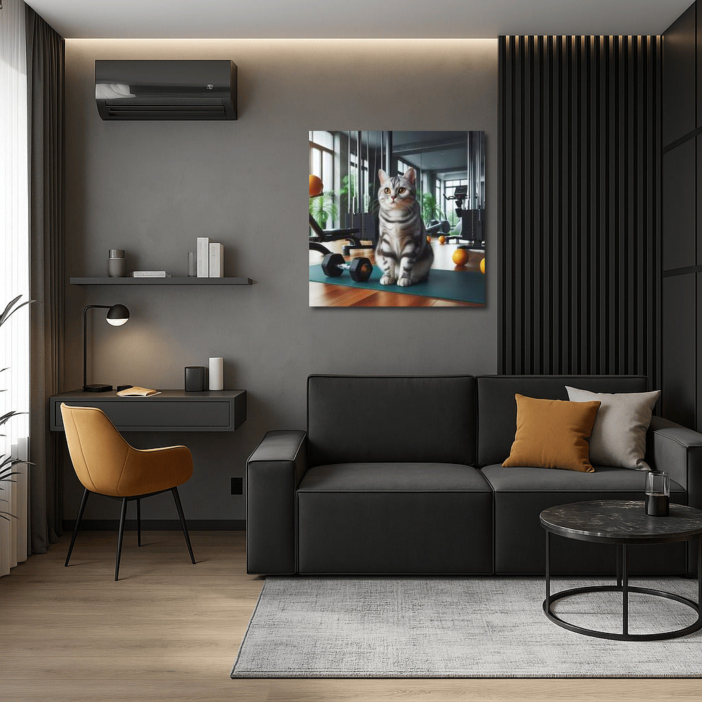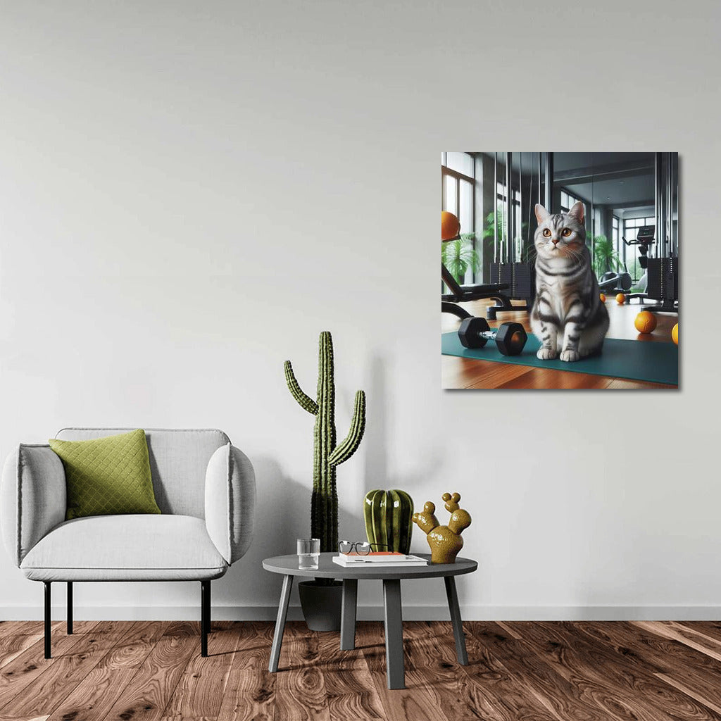 Cat in the gym! A funny poster with a furry trainer is the perfect wall art for sports and cat lovers. See more from the collection: American Shorthair Cat Art