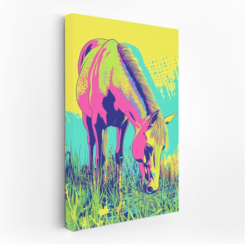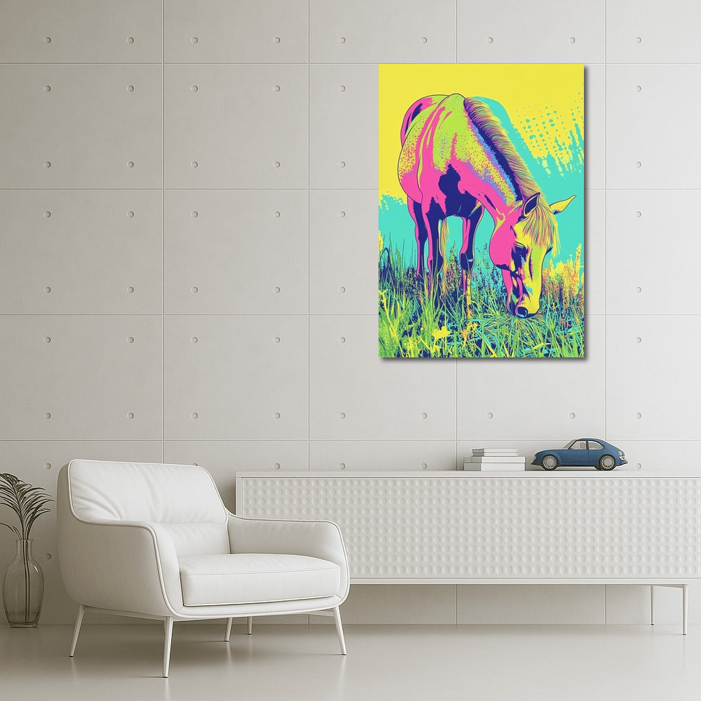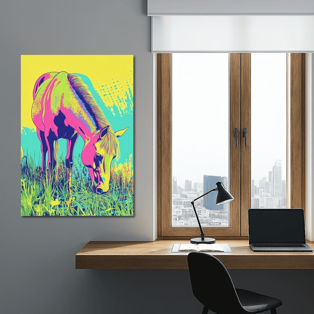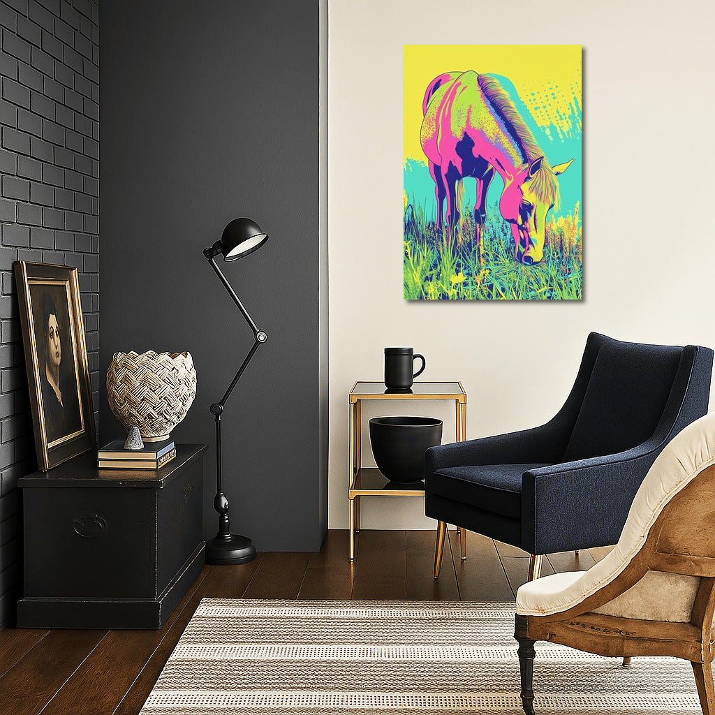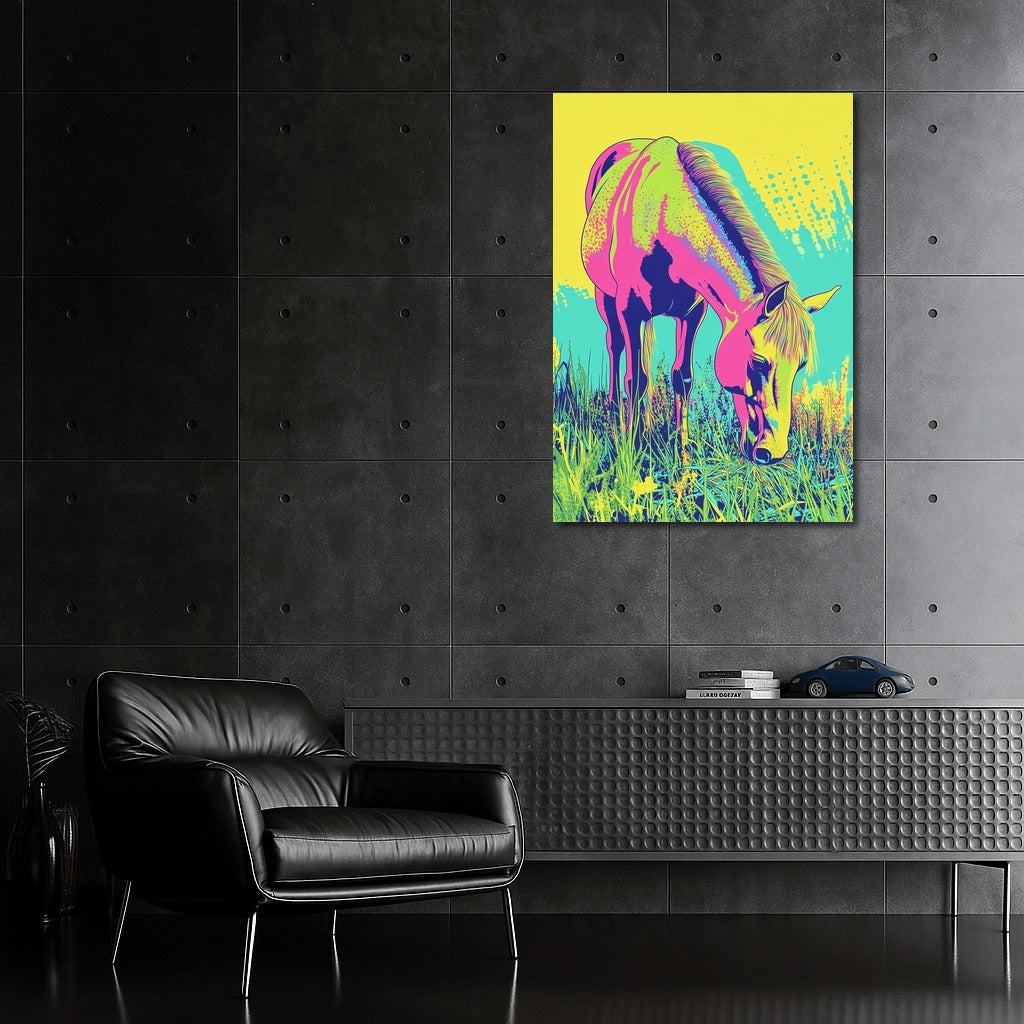Immerse yourself in a world of vibrant colors and nature with this modern horse painting. The poster will bring life to any space with unique art! See more from the collection: Animals Art