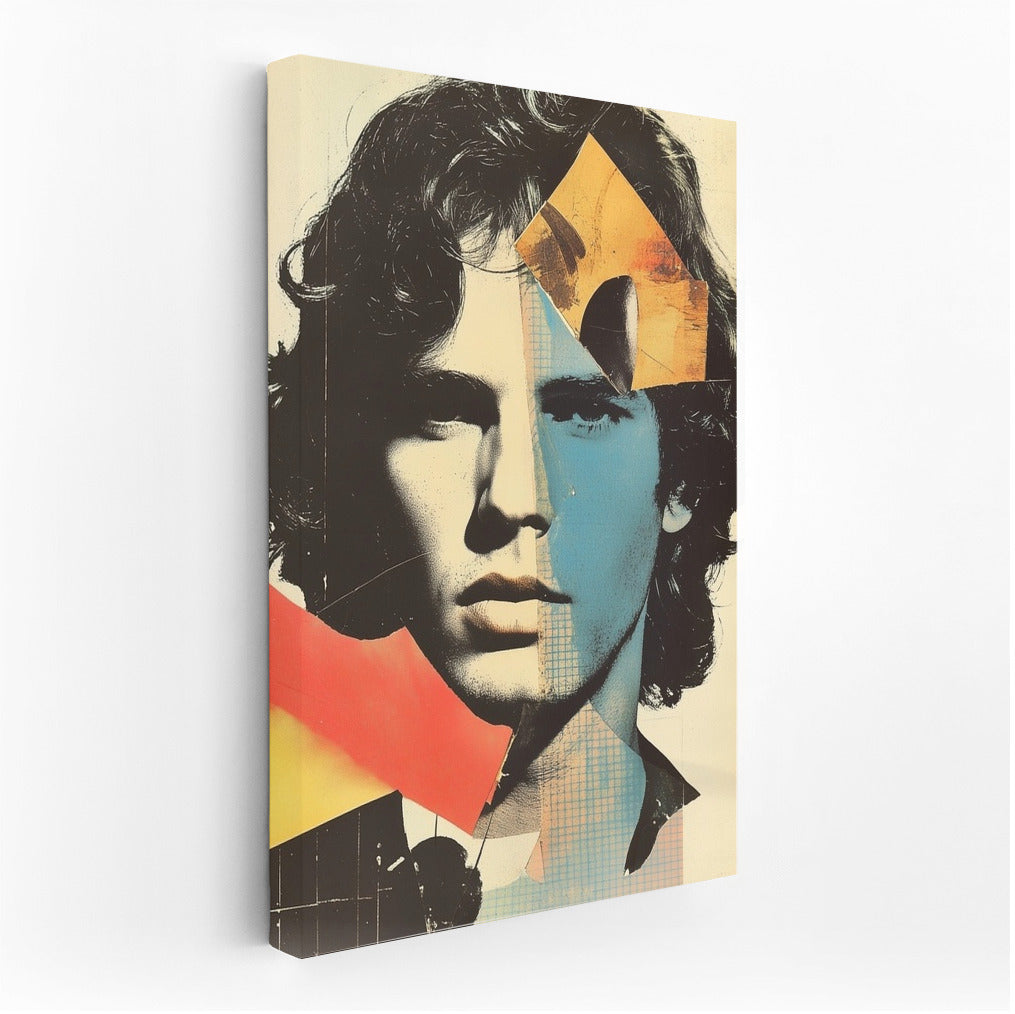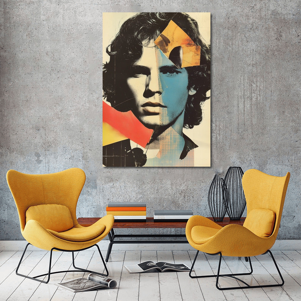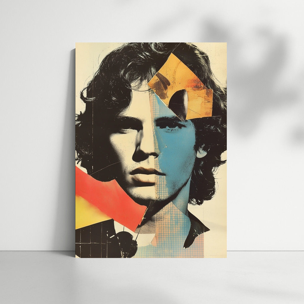 Bright poster: abstraction and male image in a stylish collage. Ideal wall art for a modern interior. See more from the collection: Pop Art