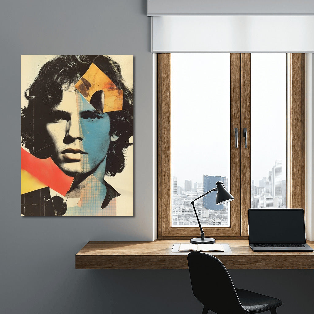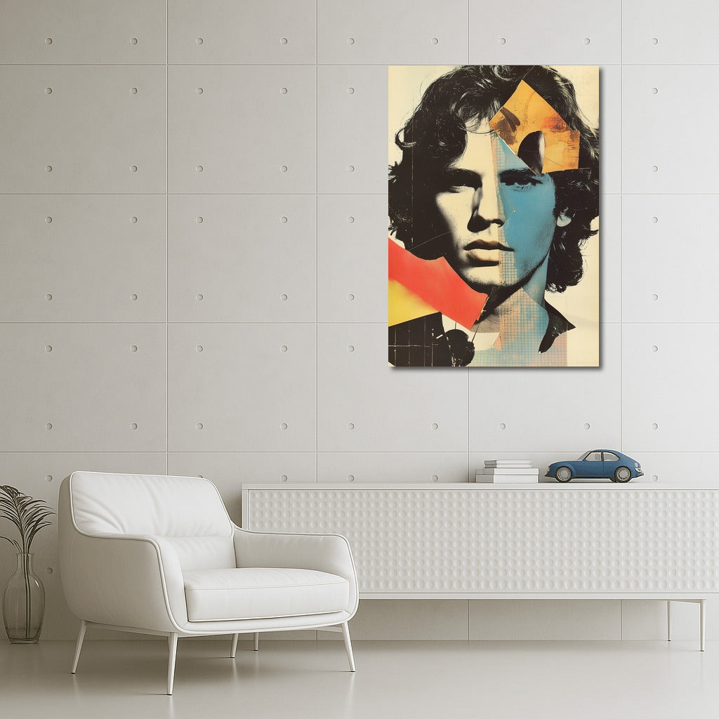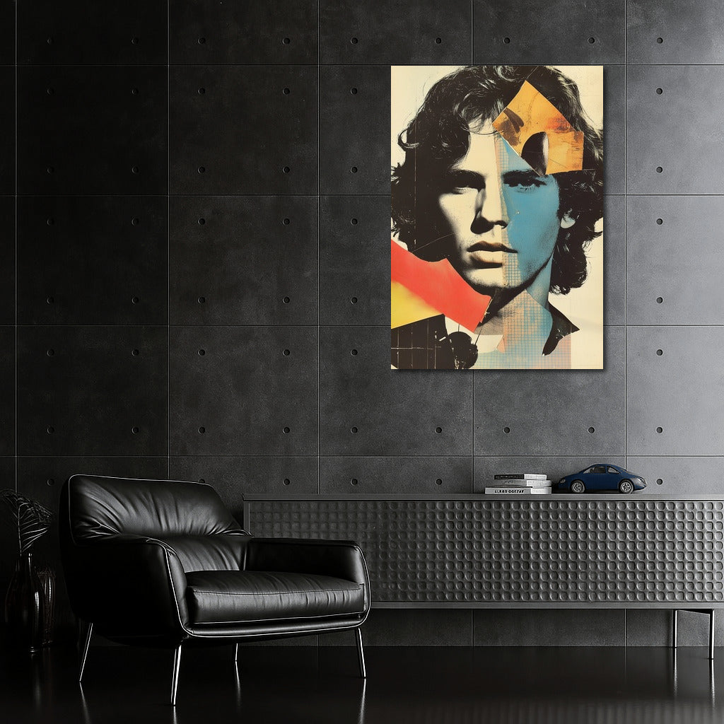 Bright poster: abstraction and male image in a stylish collage. Ideal wall art for a modern interior. See more from the collection: Pop Art