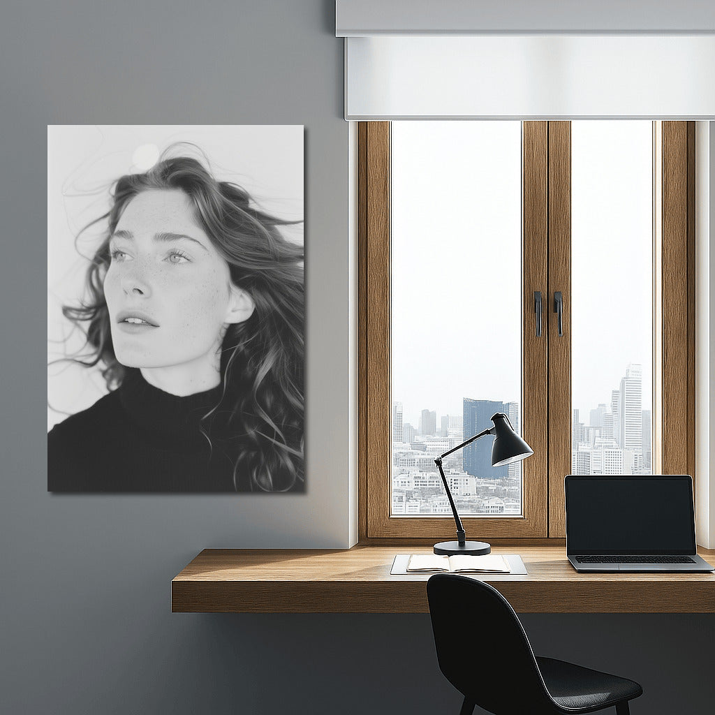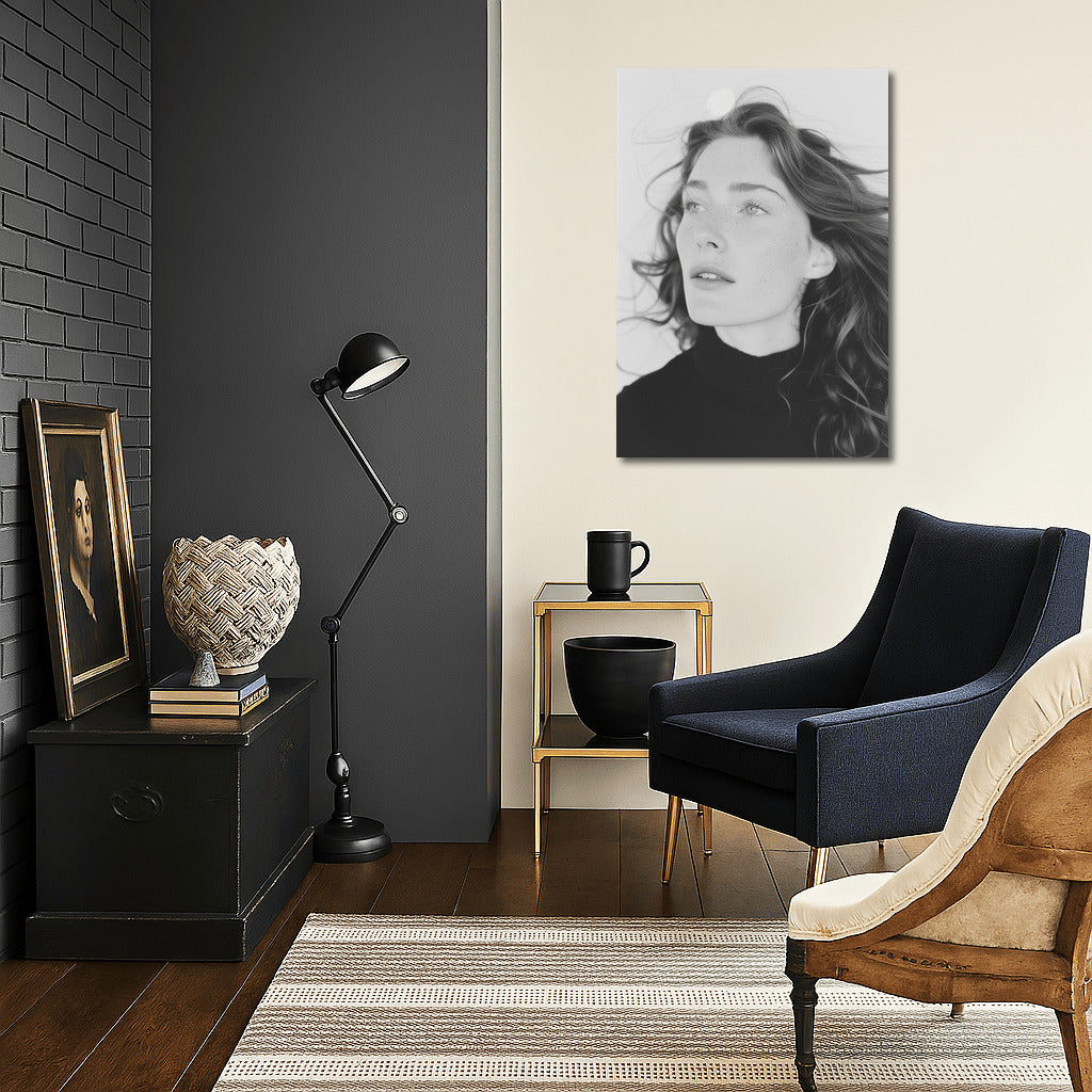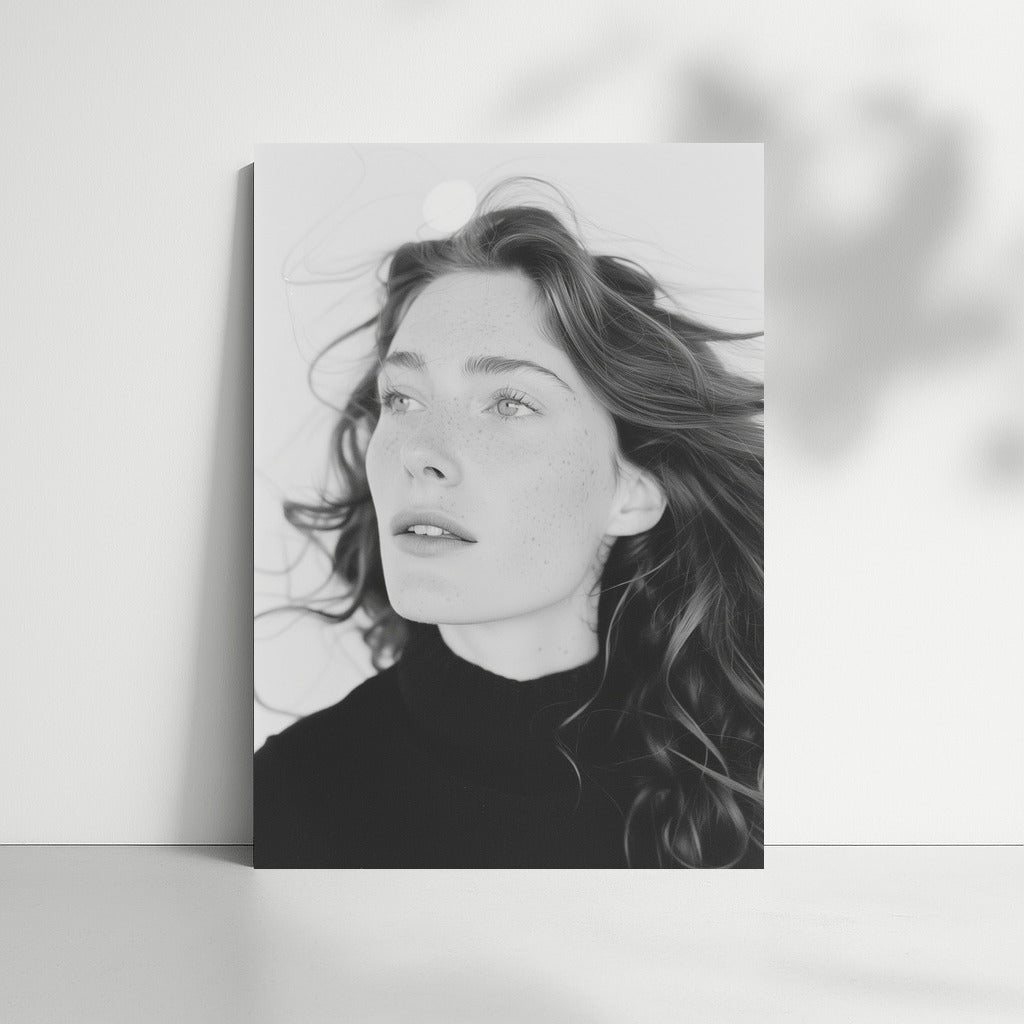An elegant painting: a dreamy figure in black and white. A stylish poster for your space, bringing lightness and inspiration. See more from the collection: Black and White Art