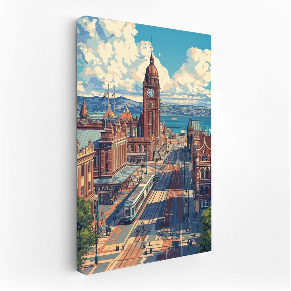 Immerse yourself in the atmosphere of a paintingsque city with this painting. Architecture, sea and clouds create the perfect wall art. See more from the collection: Cityscapes & Skylines Art