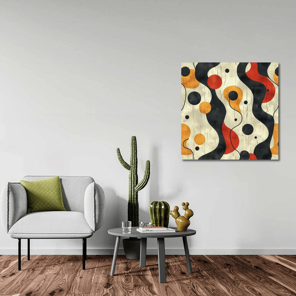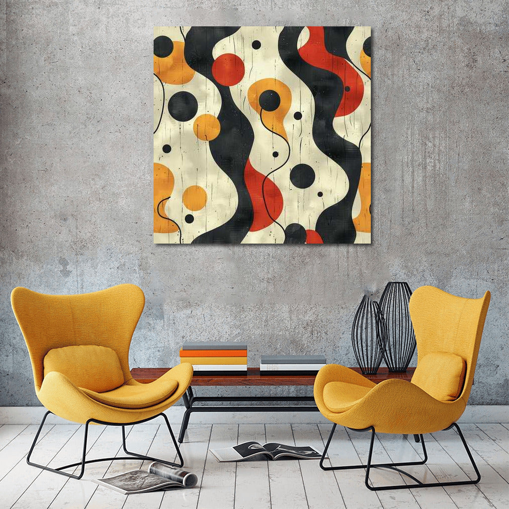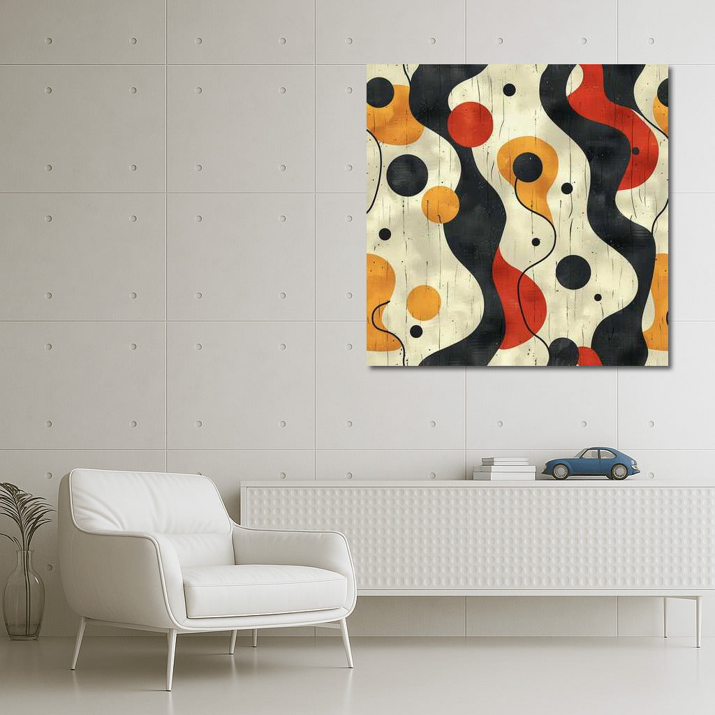 An abstract minimalist canvas: playful lines and shapes create a harmonious dance of colors. Ideal for a modern interior. See more from the collection: Minimalism Art