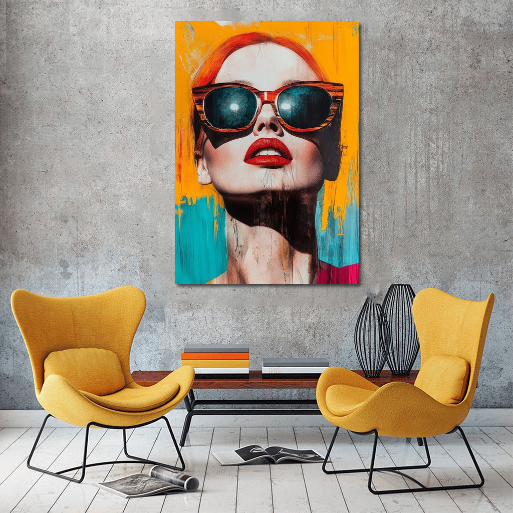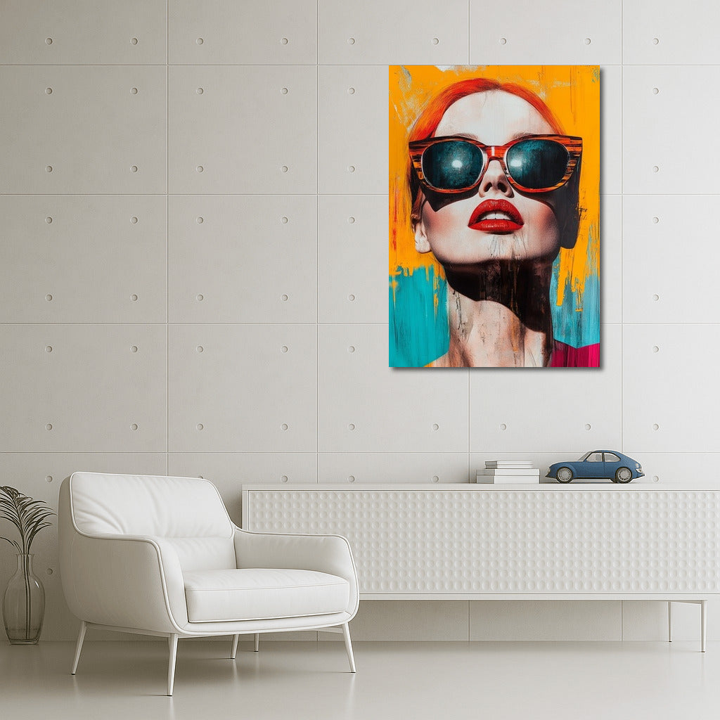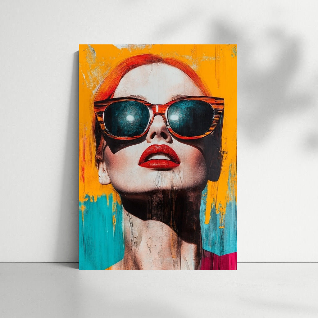 A vibrant poster with an abstract portrait: bold colors, stylish glasses and sensual lips - an accent for your wall art. See more from the collection: Mixed Wall Art