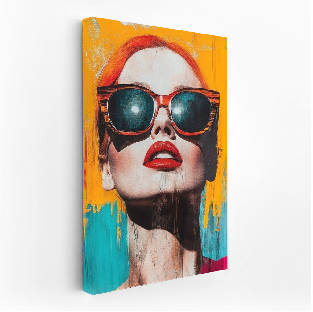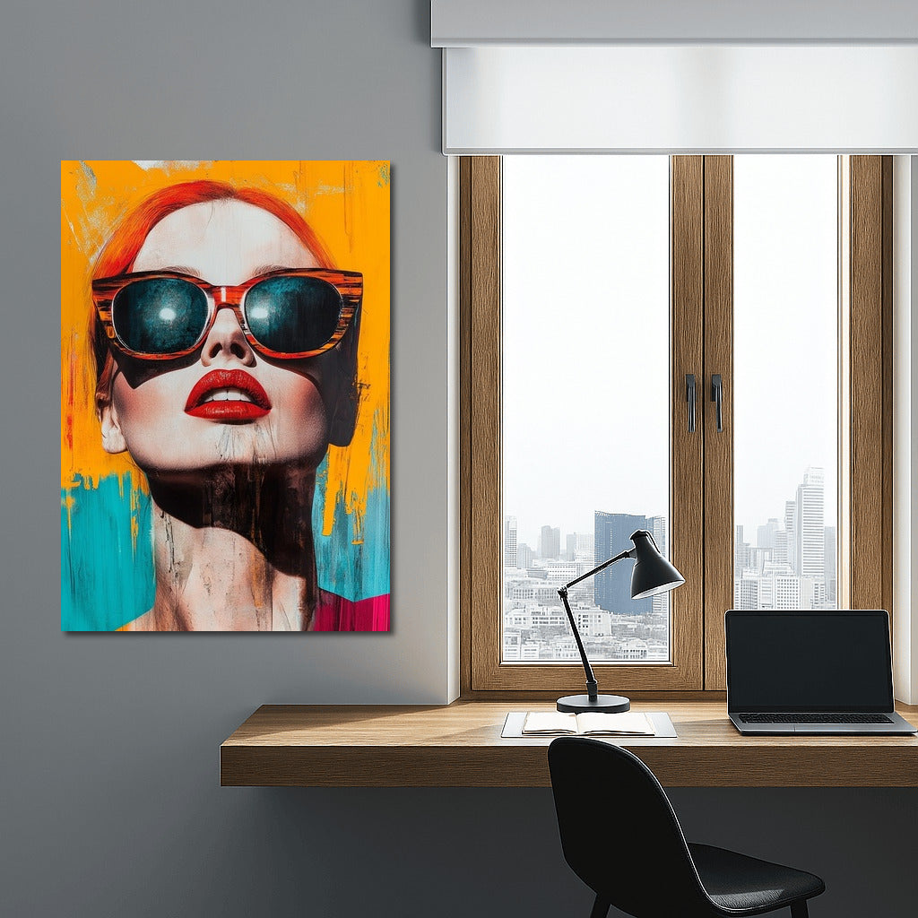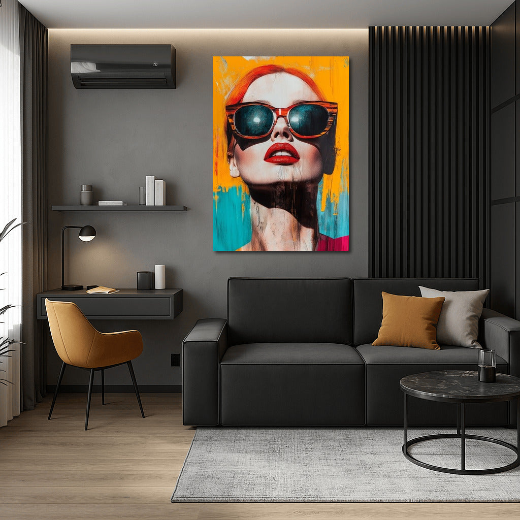 A vibrant poster with an abstract portrait: bold colors, stylish glasses and sensual lips - an accent for your wall art. See more from the collection: Mixed Wall Art