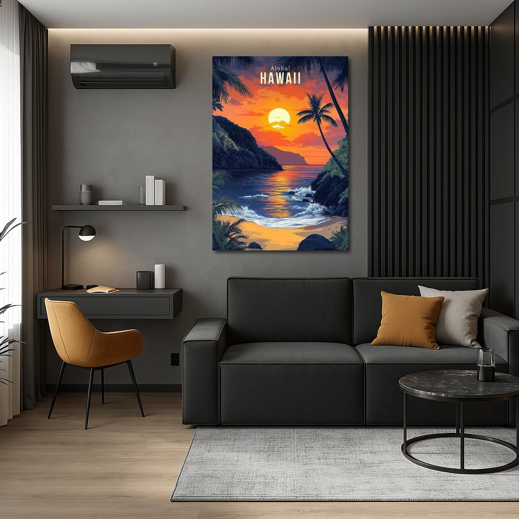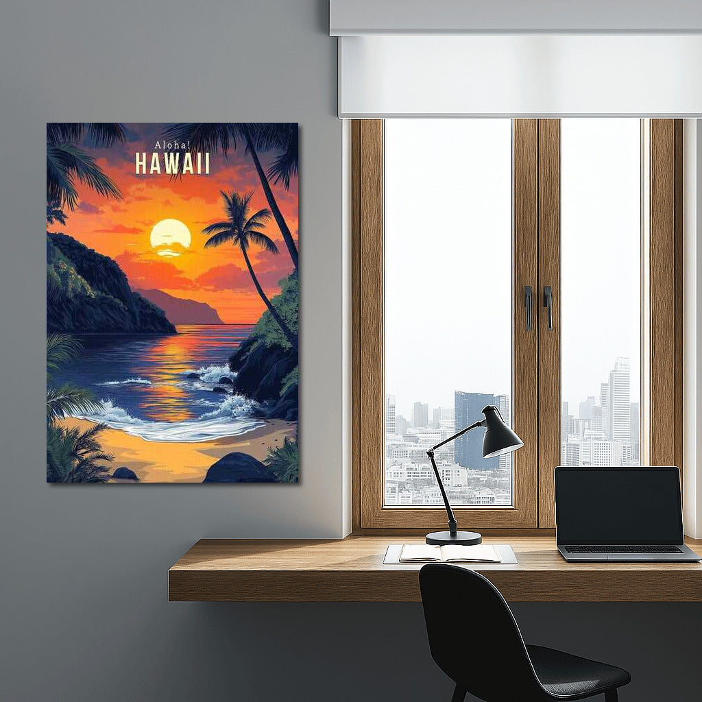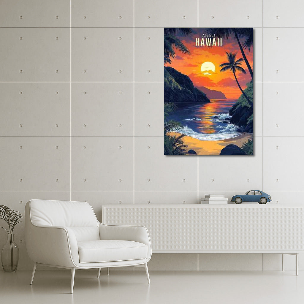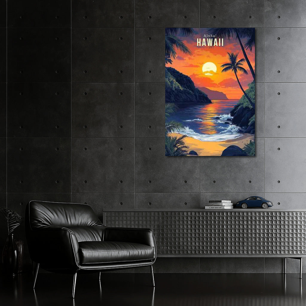 Discover the Hawaiian sunset with this vibrant poster. Wall art that captures the spirit of the country in every brushstroke. See more from the collection: Country Art
