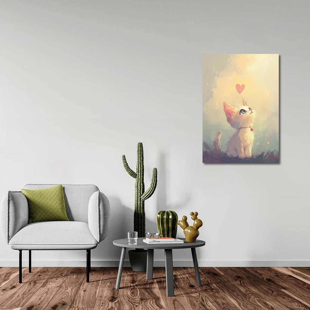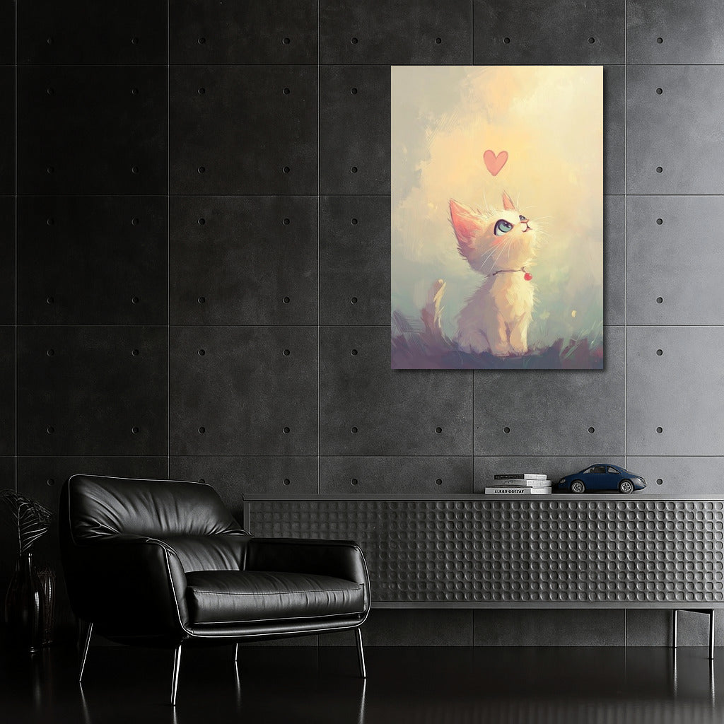 Adorable poster with a cute kitten and heart. Add tenderness and coziness to your home with this fabulous wall art. See more from the collection: Animals Art