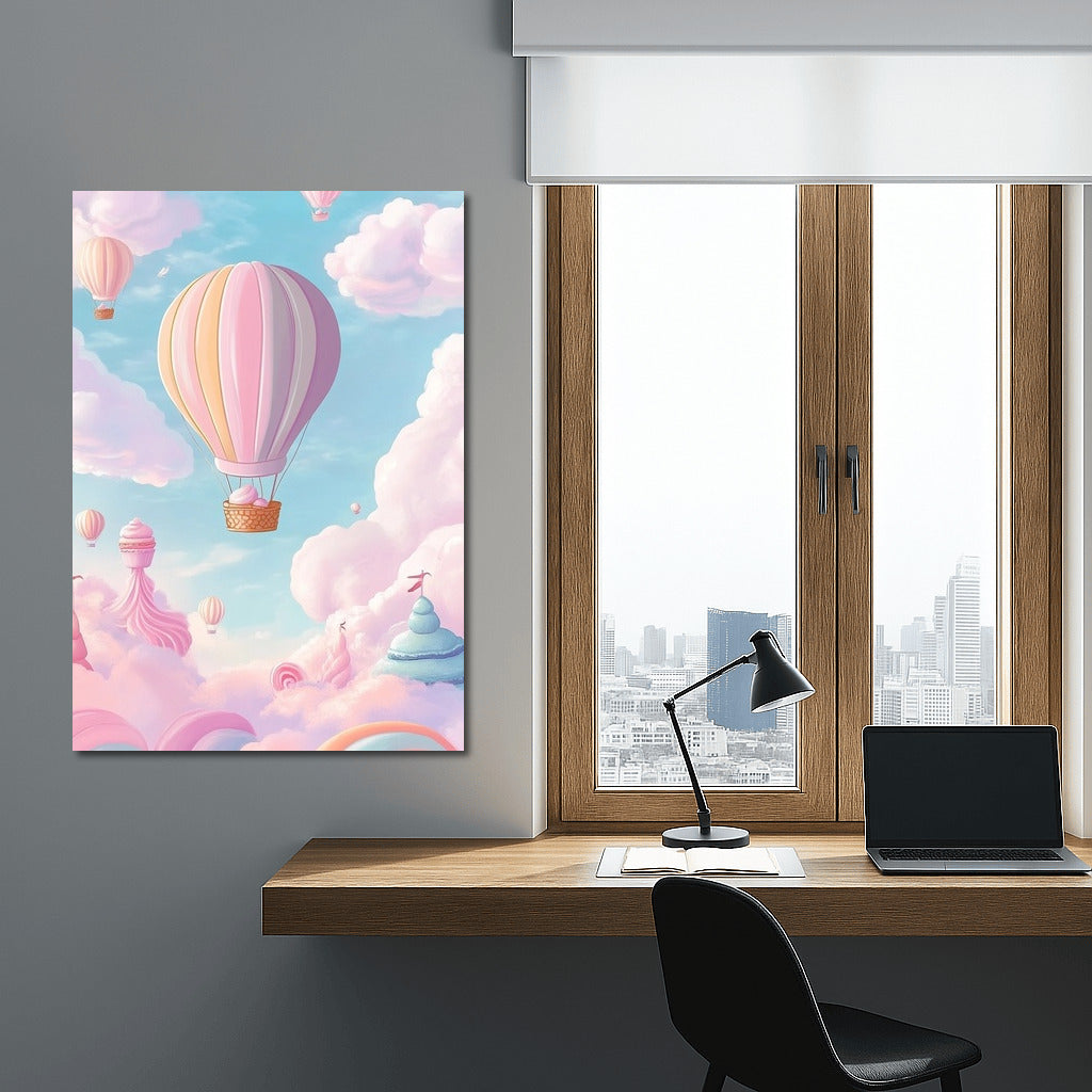 Dive into the world of airy tenderness with the poster Balloons. Lightness and dreams fly up among sweet clouds! See more from the collection: Mixed Wall Art