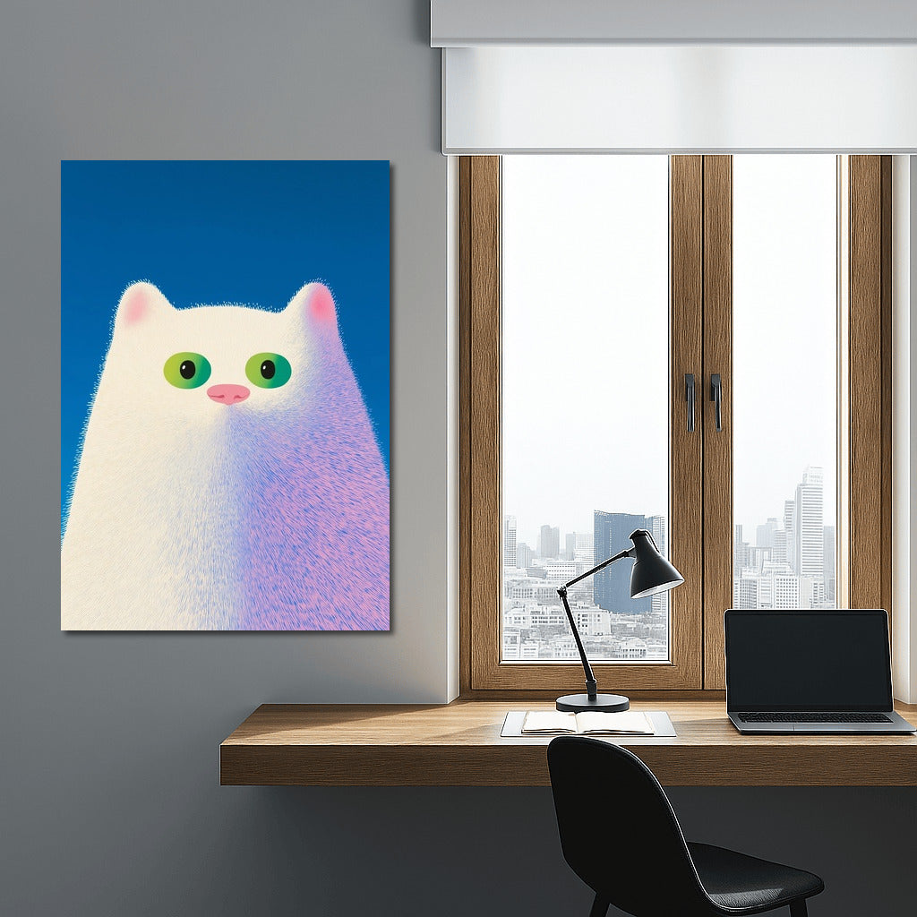 A vibrant poster featuring a mysterious white cat against a blue sky is a must-have piece to liven up your wall art. See more from the collection: Animals Art