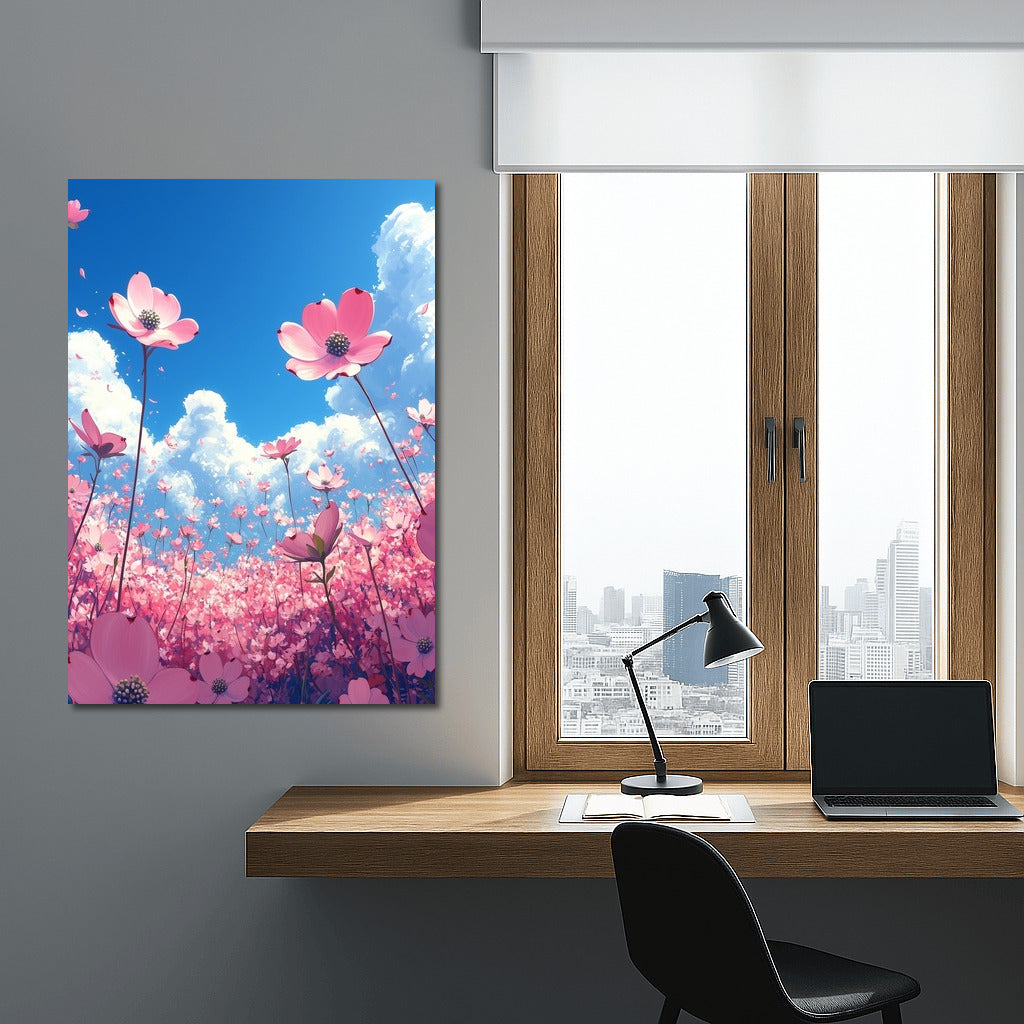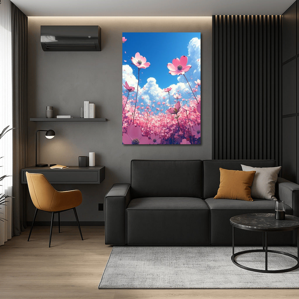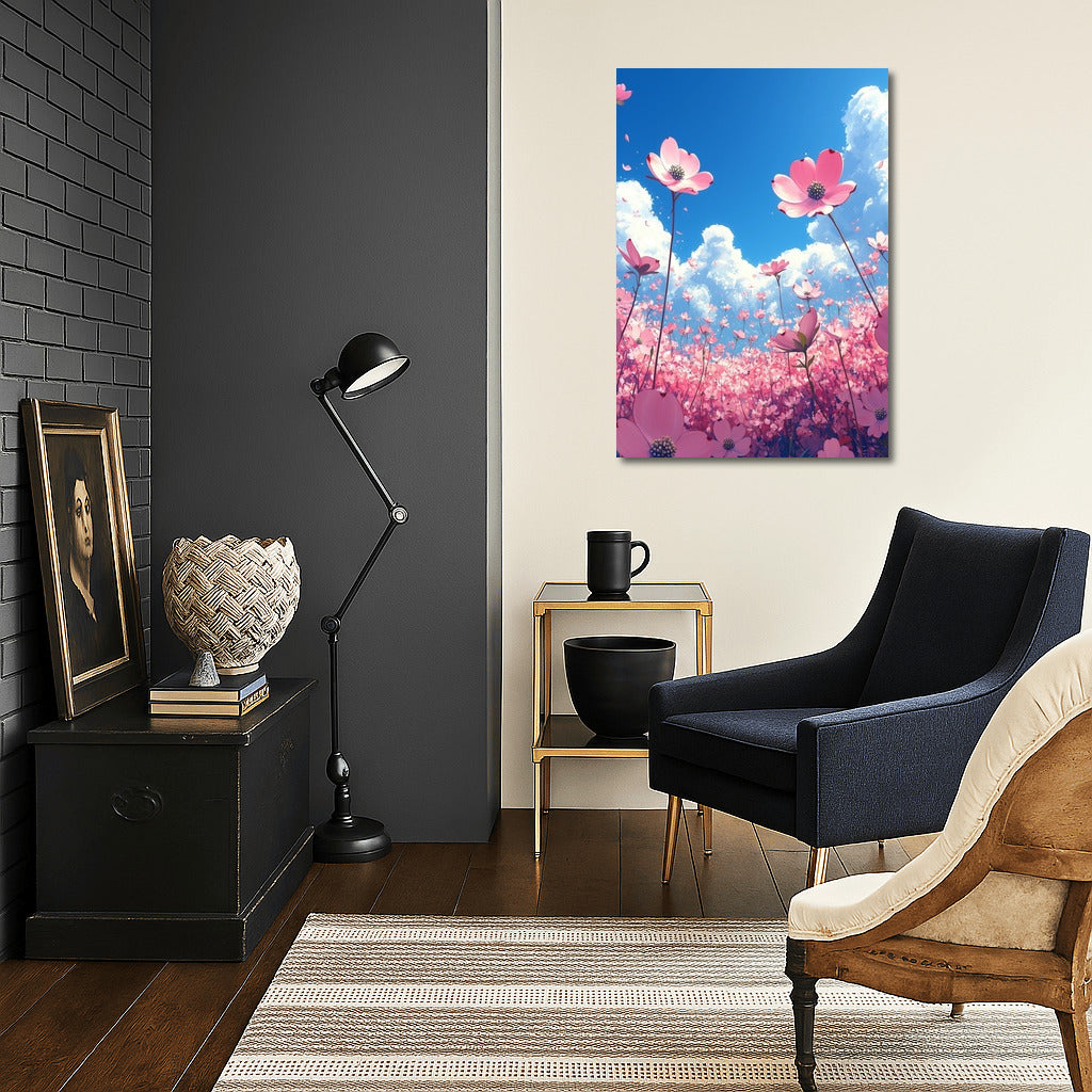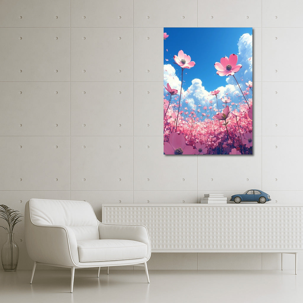 Flower Cloud: A poster of pink flowers reaching for the sky. Wall art full of light and spring inspiration. See more from the collection: Flowers Art