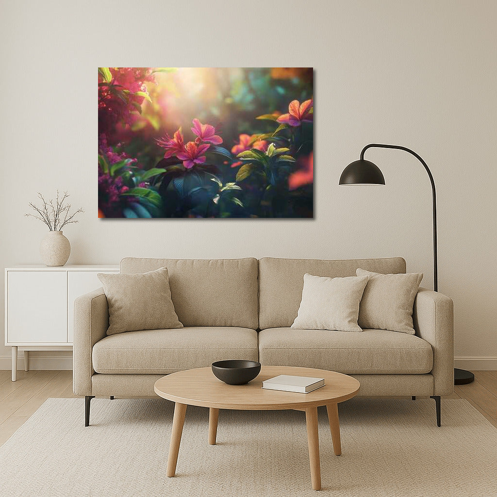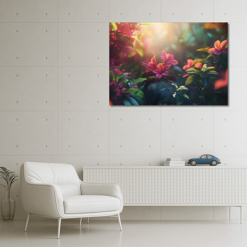 The embodiment of a Japanese garden: a poster with hibiscus flowers will envelop your interior with an atmosphere of morning light and harmony. See more from the collection: Flowers Art