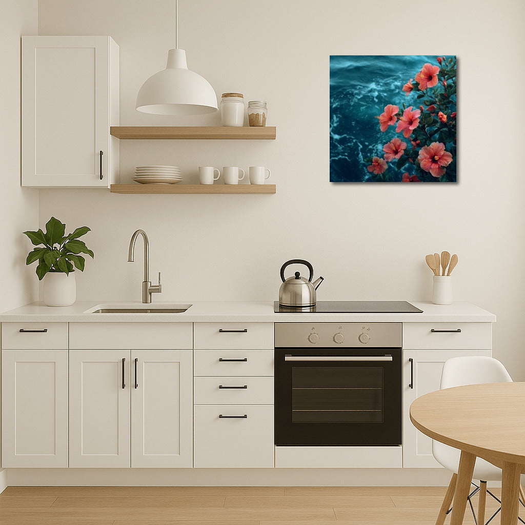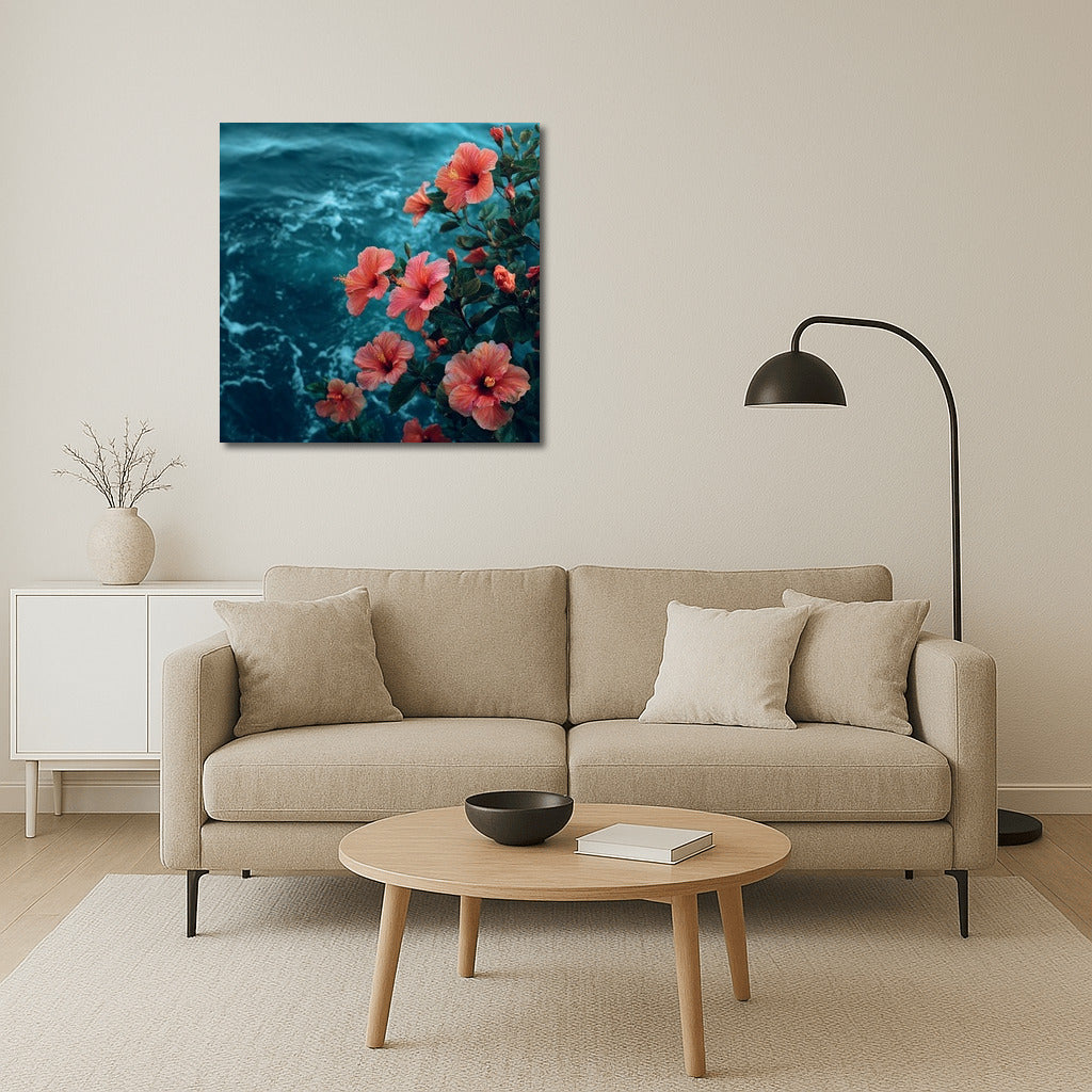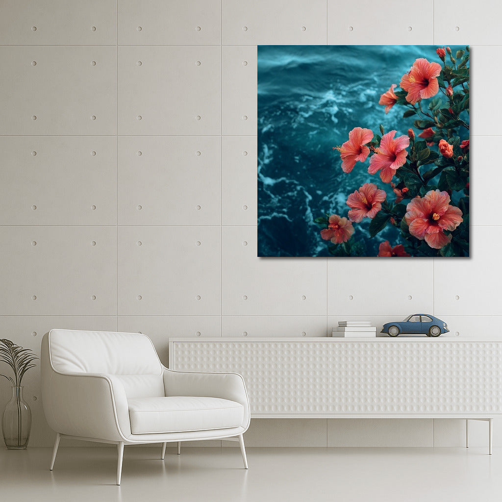 Hibiscus on Ocean Waves: Floral Freshness for the Interior Wall Art
