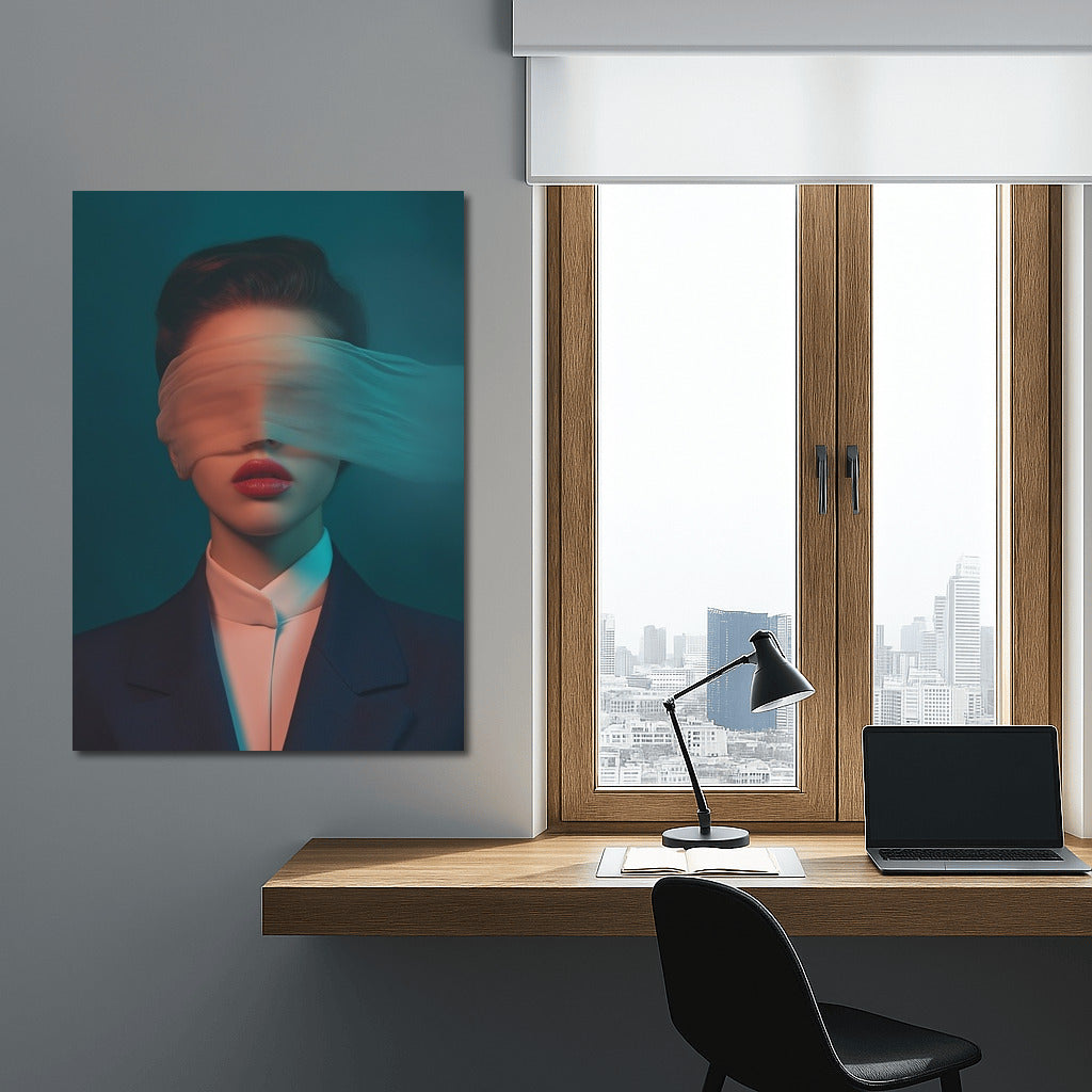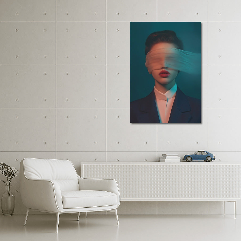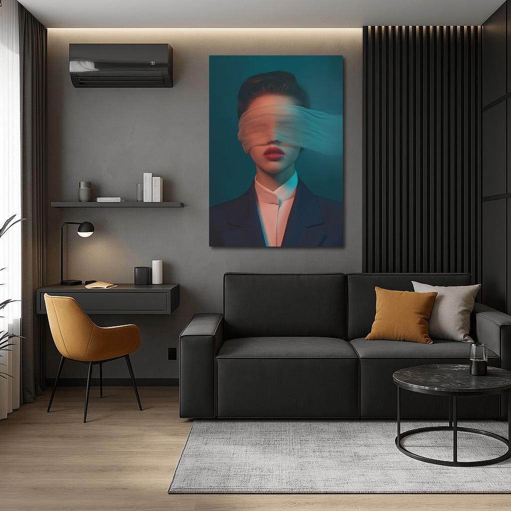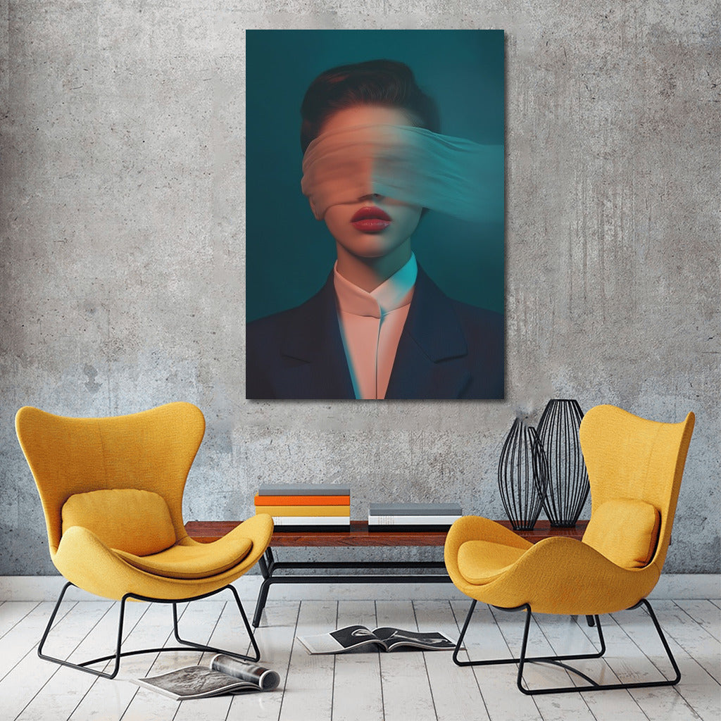 Mysterious painting: silhouette behind the bandage, mystery and style. Decorate the wall with an atmospheric poster, adding intrigue to the interior. See more from the collection: Mixed Wall Art