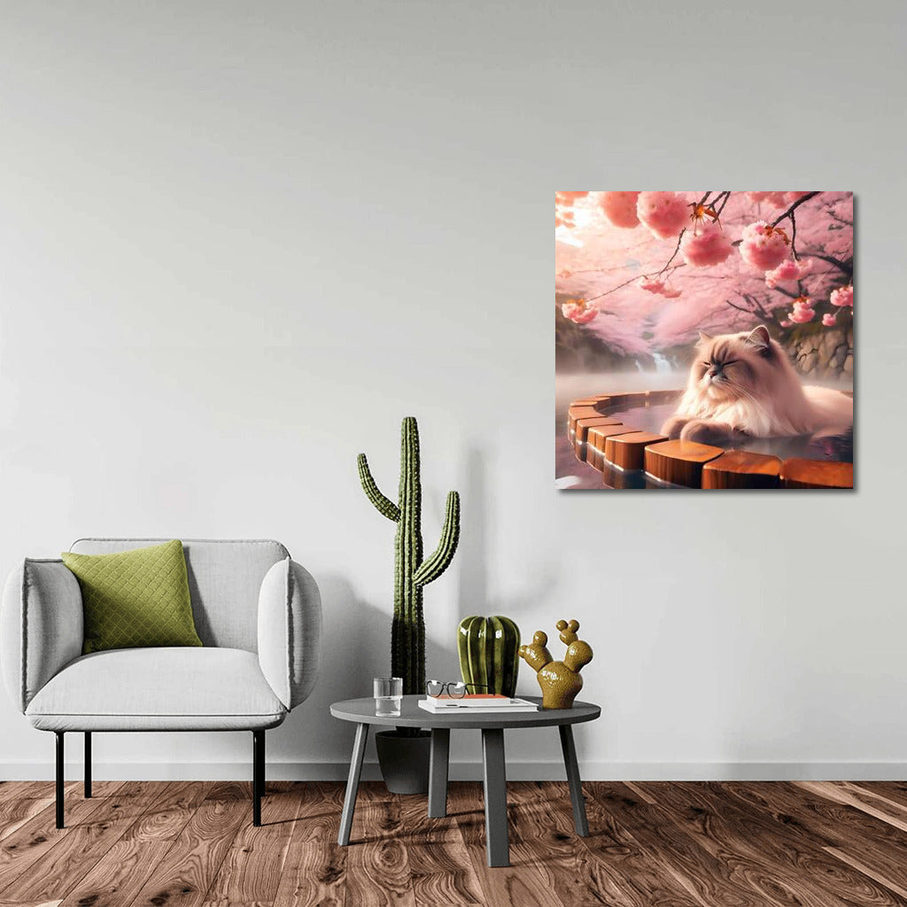 Himalayan Cat in Japanese Onsen among Cherry Blossoms Wall Art