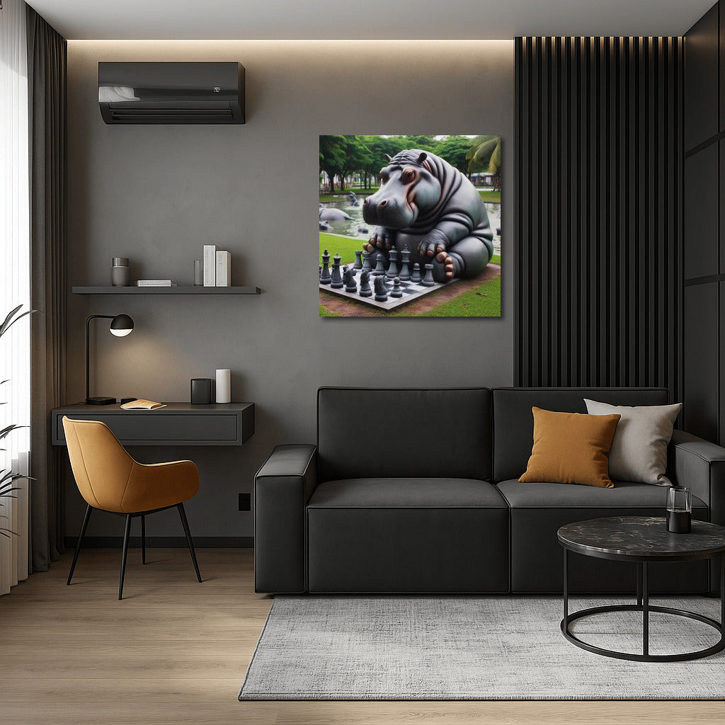 The poster Hippopotamus playing chess in the park will bring a touch of humor and natural art to your interior! See more from the collection: Animals Art