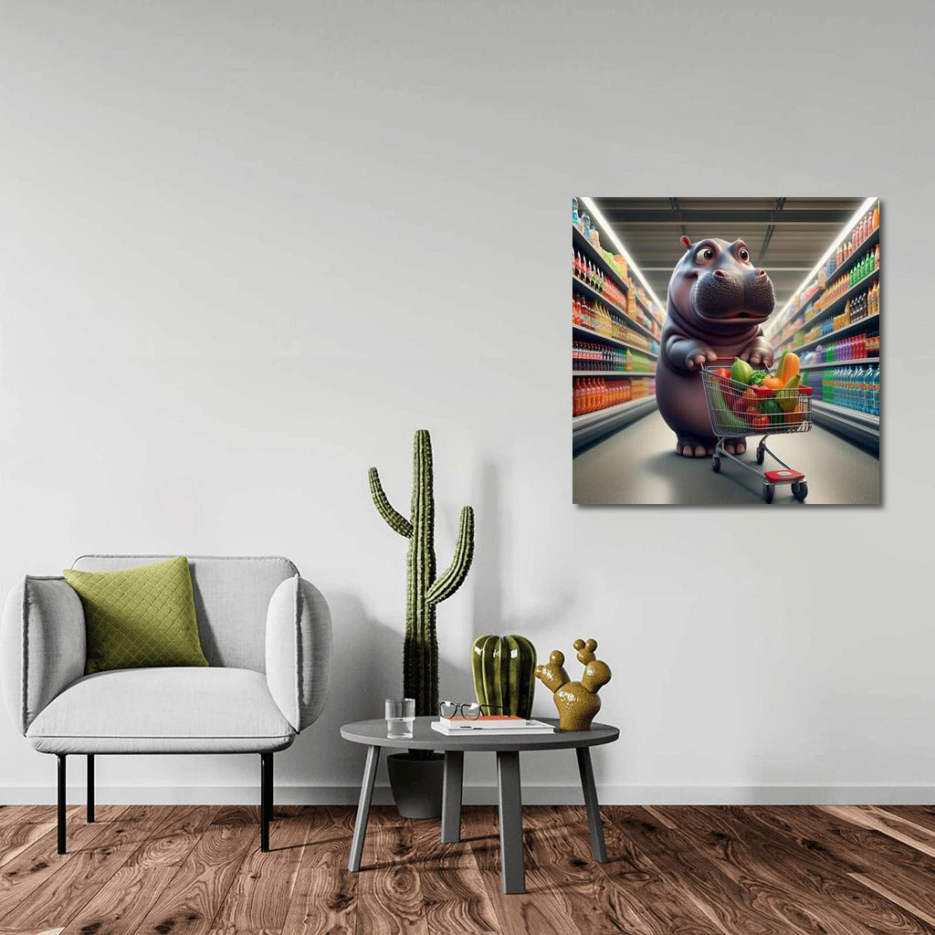 Hippo in the Supermarket: Fun Grocery Shopping Wall Art