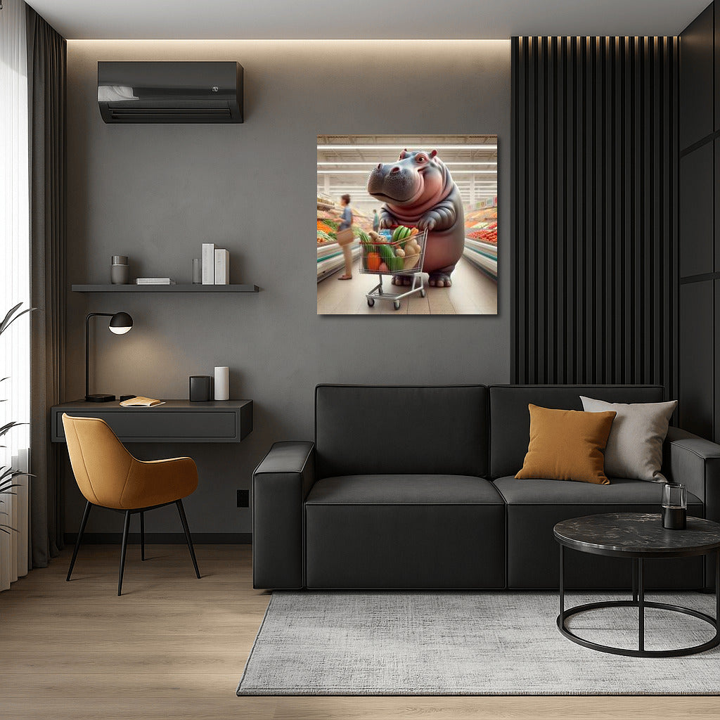 Hippo in the supermarket: Vegetable shopping with a smile Wall Art