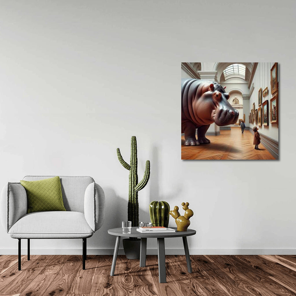 Hippopotamus in the Museum Halls: A Surreal Journey Wall Art