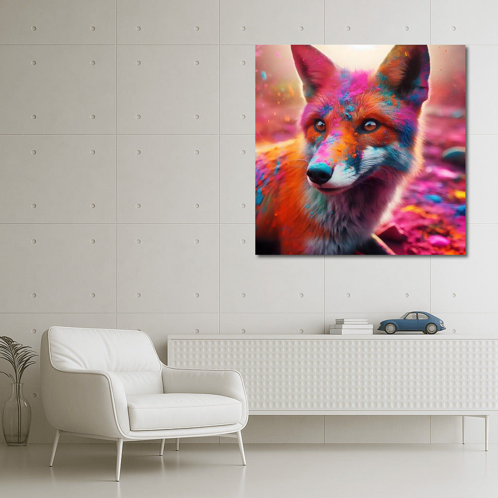 A fox wrapped in vibrant Holi colors brings life to your interior! A perfect painting for those who love unusual wall art. See more from the collection: Animals Art