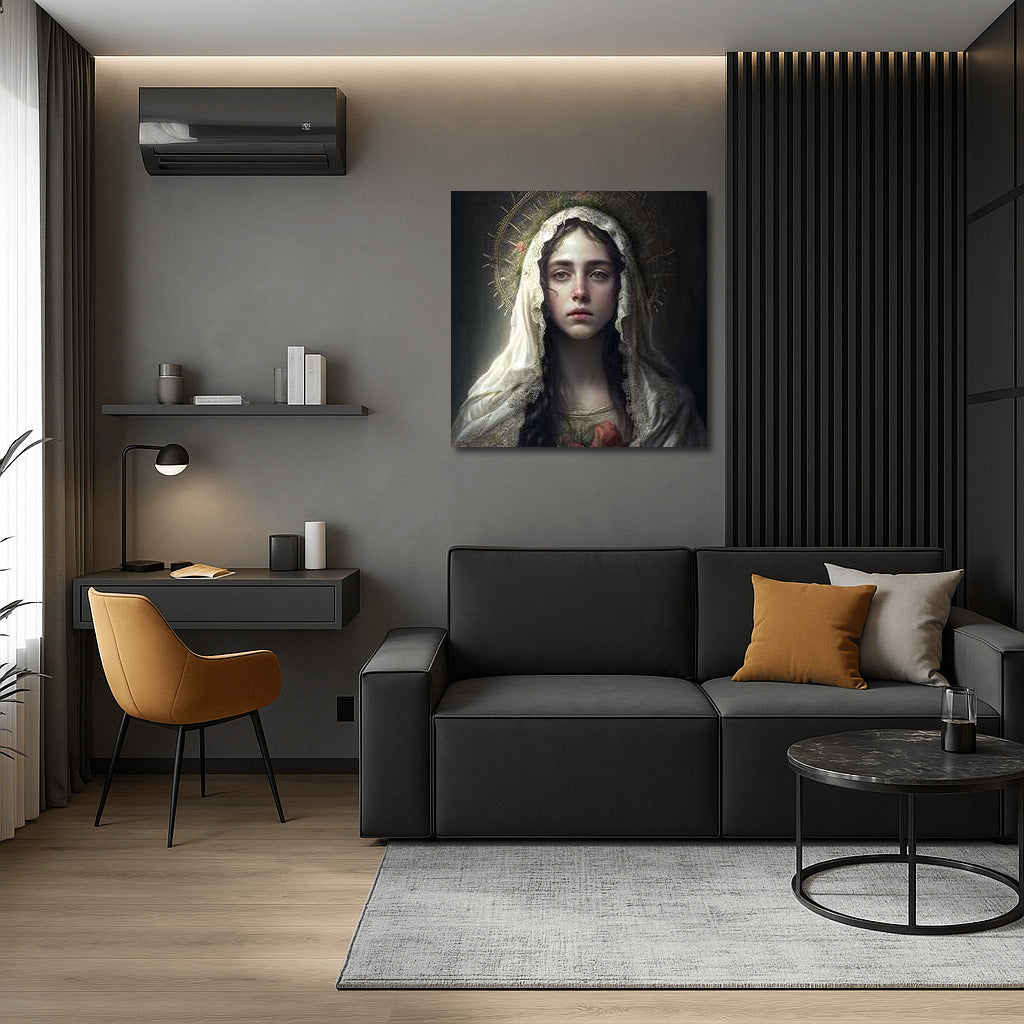This wall art radiates spiritual peace. Beautiful virginal virtue and gentle glow of holiness. See more from the collection: Christianity / Jesus Art
