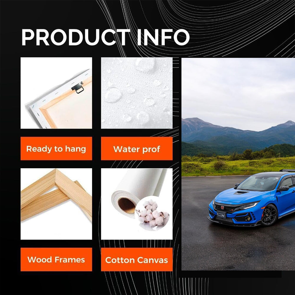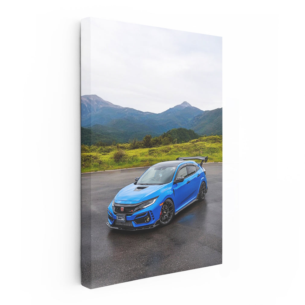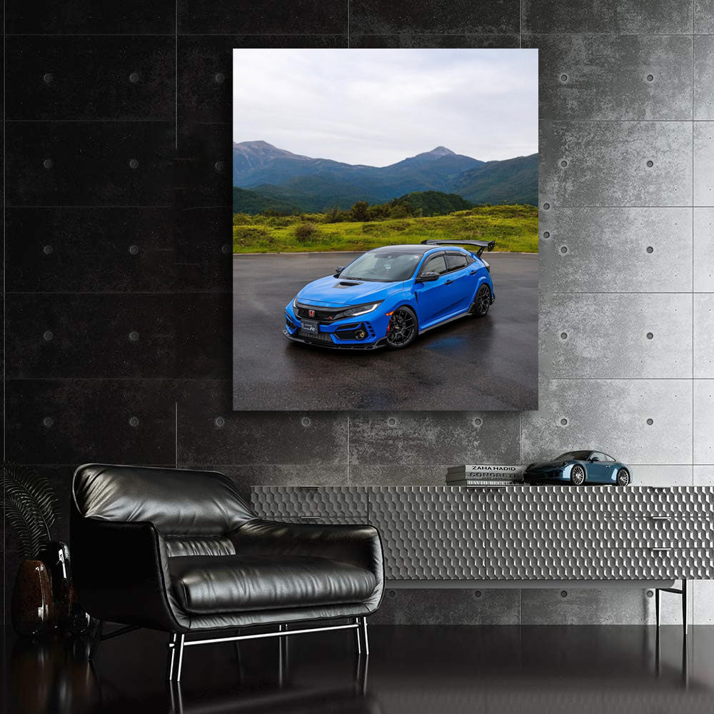 This painting is a masterpiece for true car fans. Honda Civic, posing boldly against the backdrop of mountains, as if it just came off the track. Such posters are perfect for wall art in the garage, where every bolt and nut is soaked in gasoline and adrenaline. See more from the collection: Honda Art