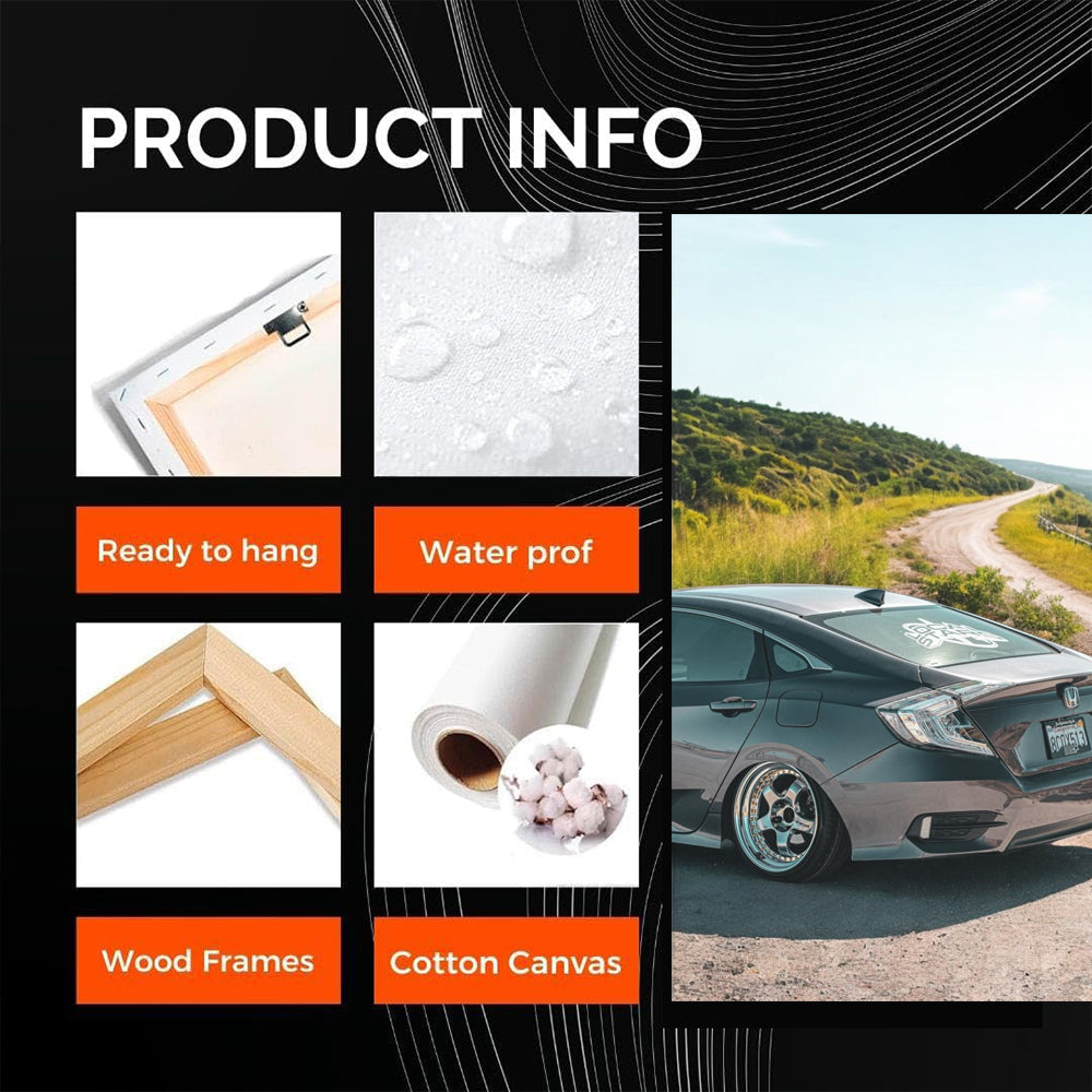 Guys, attention! A poster with a Honda Civic against the backdrop of nature is simply fire! This painting is a must-have for any car enthusiast. Wall art for true connoisseurs of speed and style. Hang it on your wall and feel the full power of the Japanese beast in the wild. See more from the collection: Honda Art